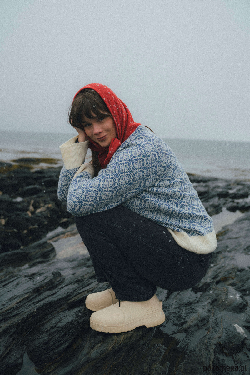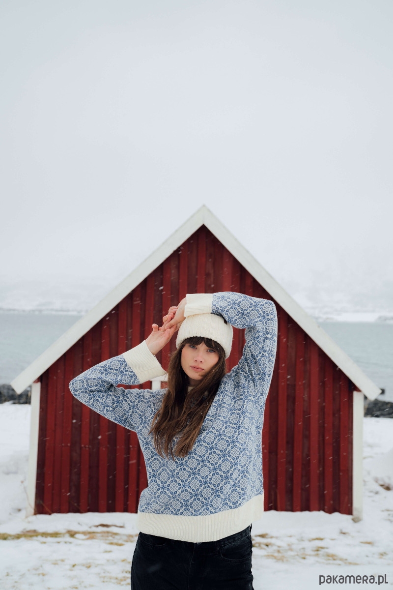 Miał być sweter norweski. Ale zamiast fiordów mamy w Beskidach swoje szczyty, doliny i… wzory. Zainspirowałyśmy się nordyckimi motywami i ubrałyśmy je w beskidzkie hafty – trochę łemkowskiego, trochę góralskiego... Zamiast bezpośredniego odwzorowania, wybrałyśmy kreatywne przetworzenie motywu – tak, by zachować jego rytm, symbolikę i kolorystykę, a jednocześnie nadać mu minimalistyczny, użytkowy charakter. W efekcie powstał wzór, który jest zarówno hołdem dla dziedzictwa bliskiego naszym sercom regionu, jak i jego nowoczesną interpretacją.