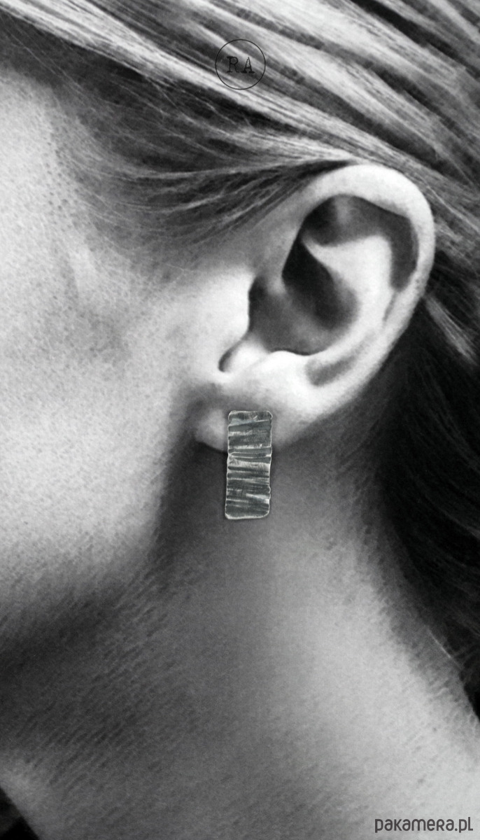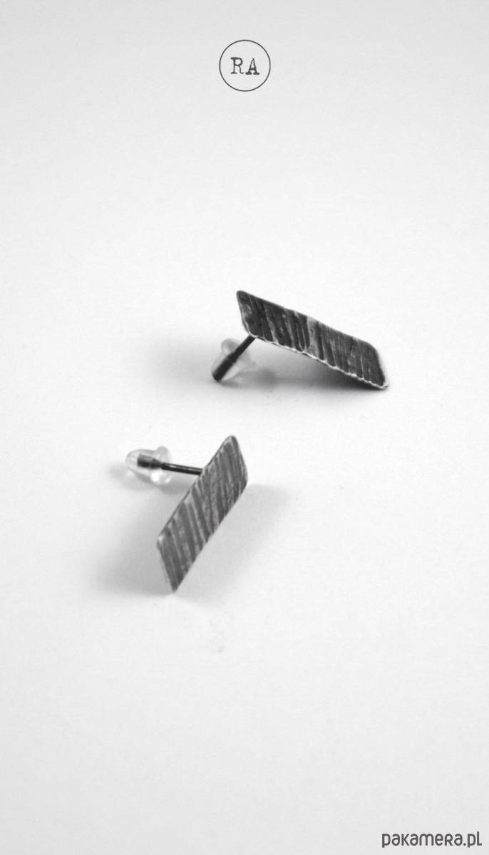 BARK Srebro - kolczyki oksydowane sztyfty paski