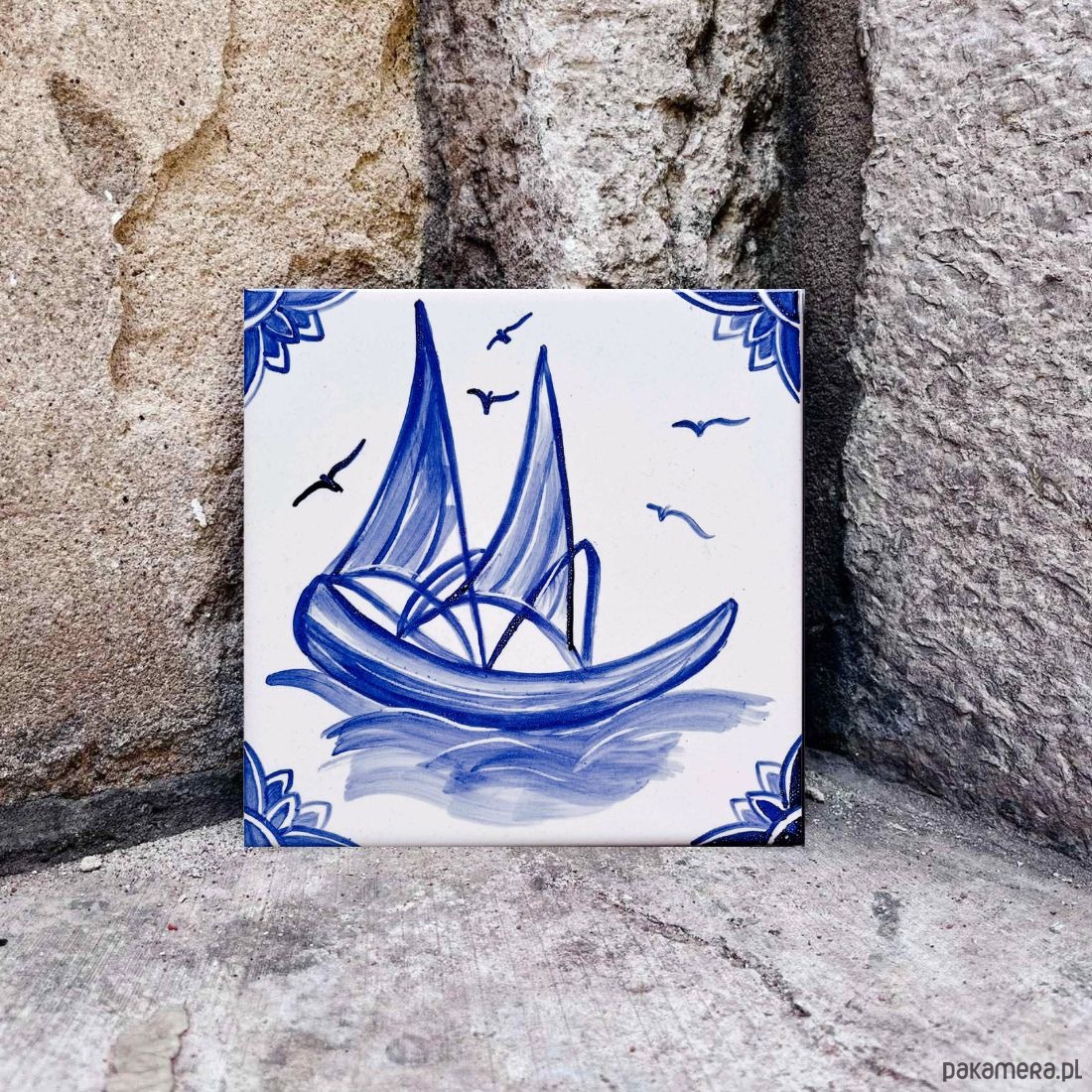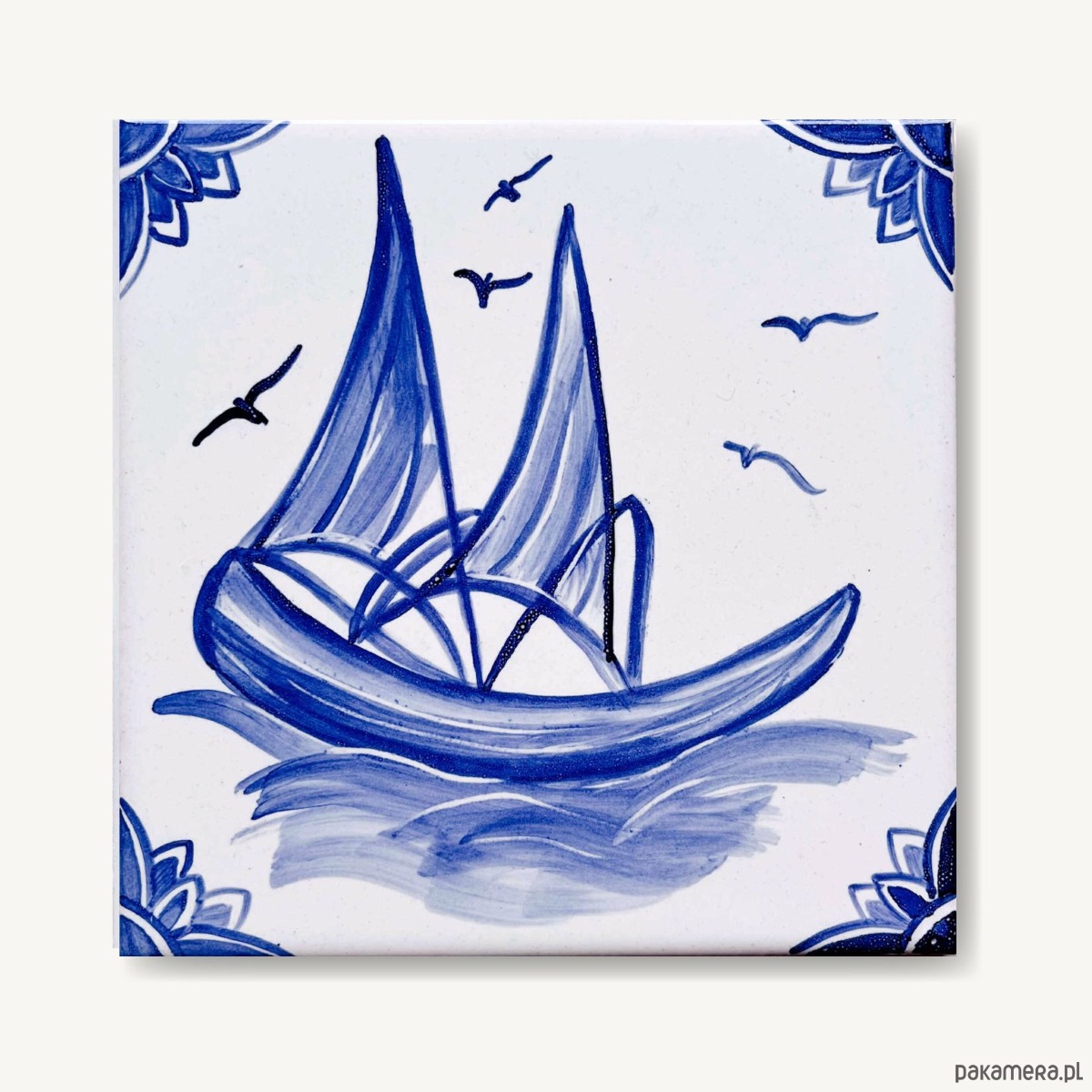 Każdy kafelek maluję ręcznie więc nie znajdziesz dwóch identycznych. Widoczne są pociągnięcia pędzla i drobne różnice w odcieniach.