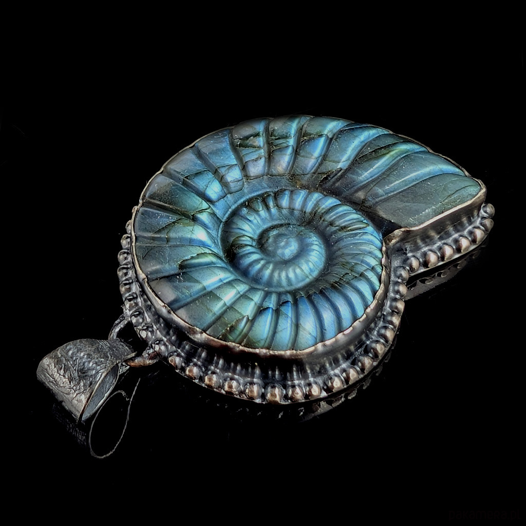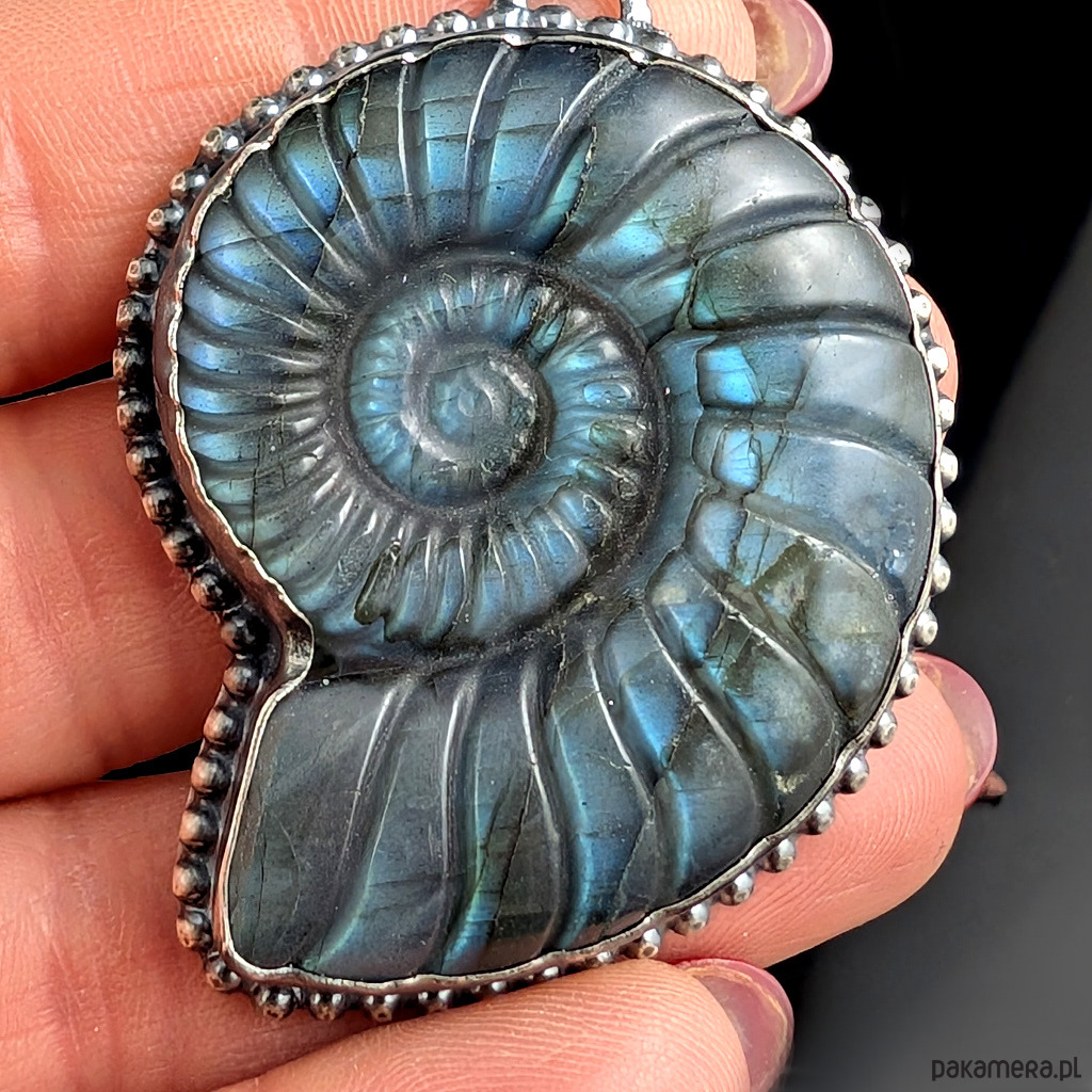 Barokowy amonit z labradorytu
