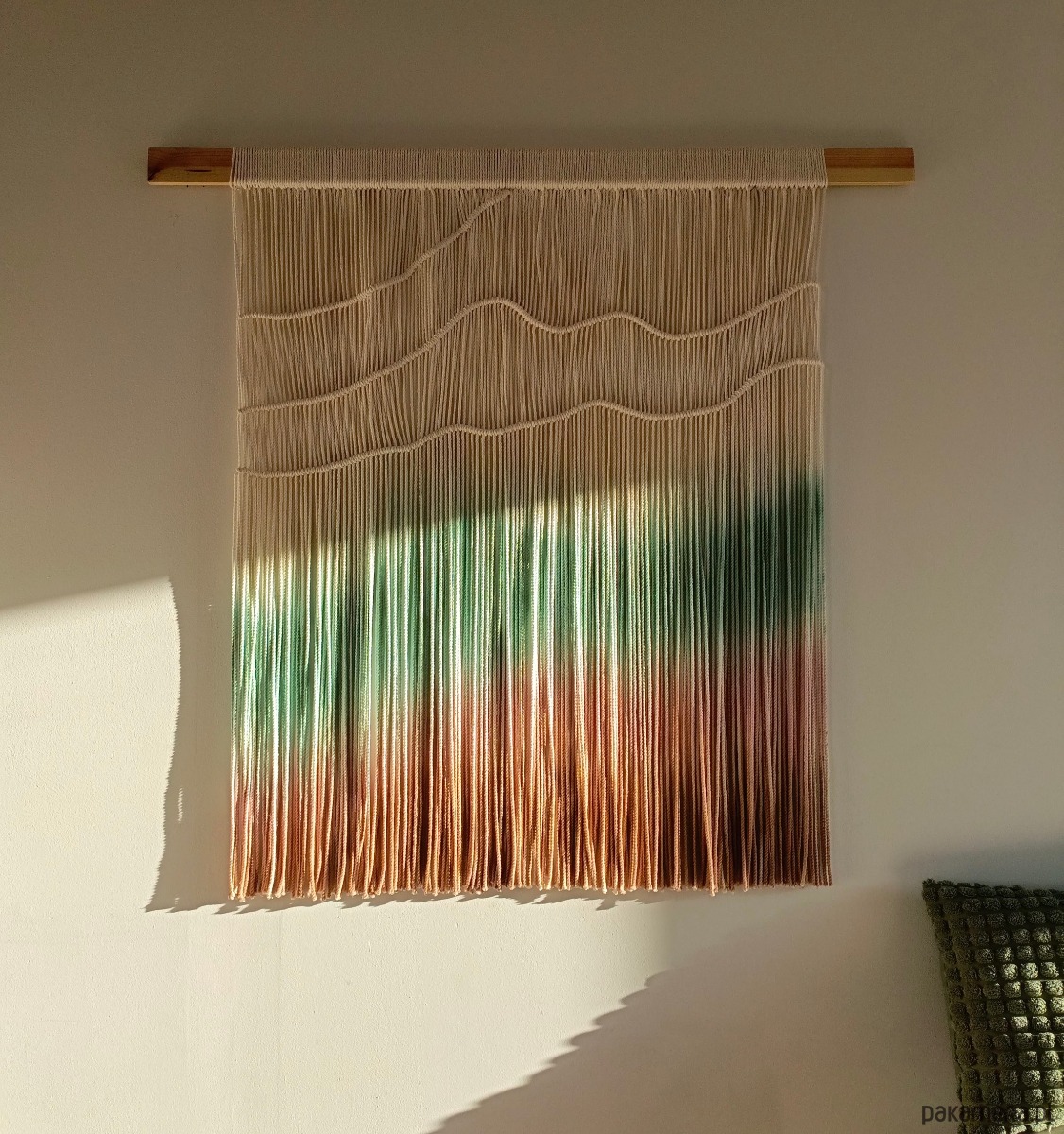 Wprowadź odrobinę natury do swojego wnętrza. Makrama Leggera, barwiona ręcznie to doskonałe połączenie elegancji i artystycznego wyrazu. Wykonana z wysokiej jakości, maturalnego sznurka bawełnianego, makrama zachwyca subtelnymi falami, które tworzą efektowną teksturę.