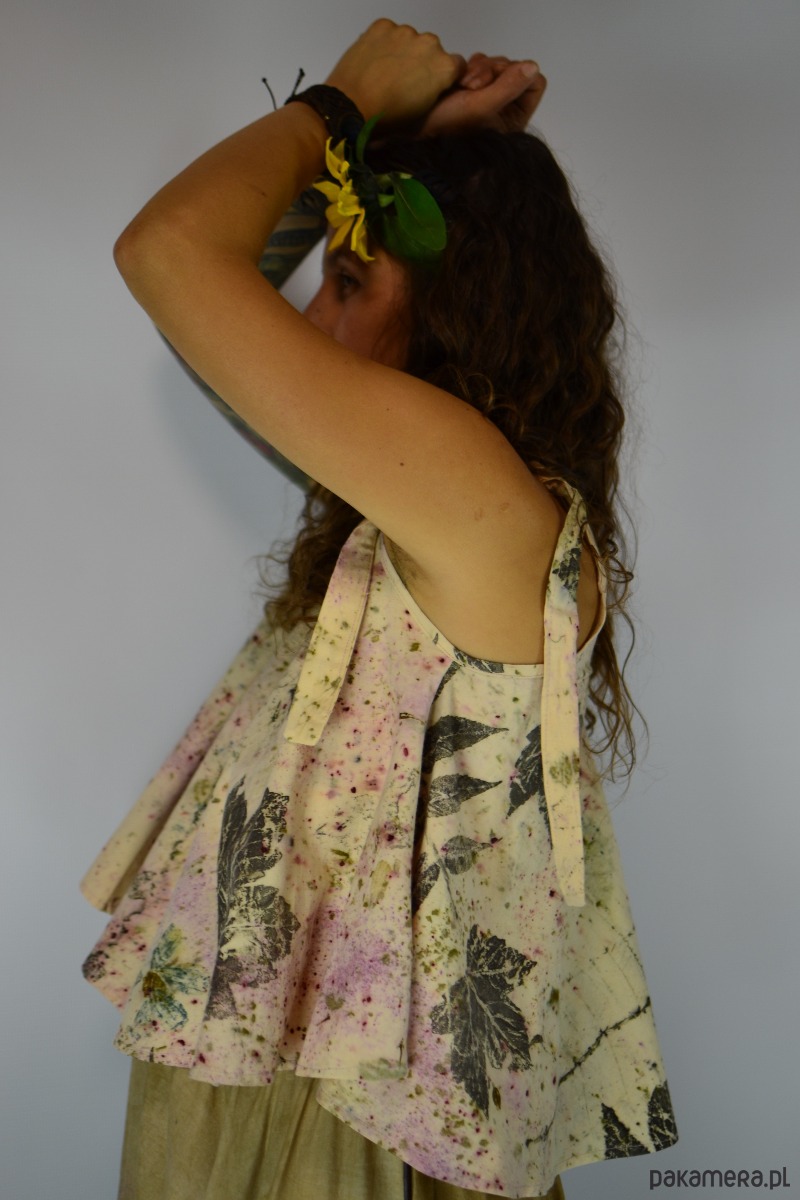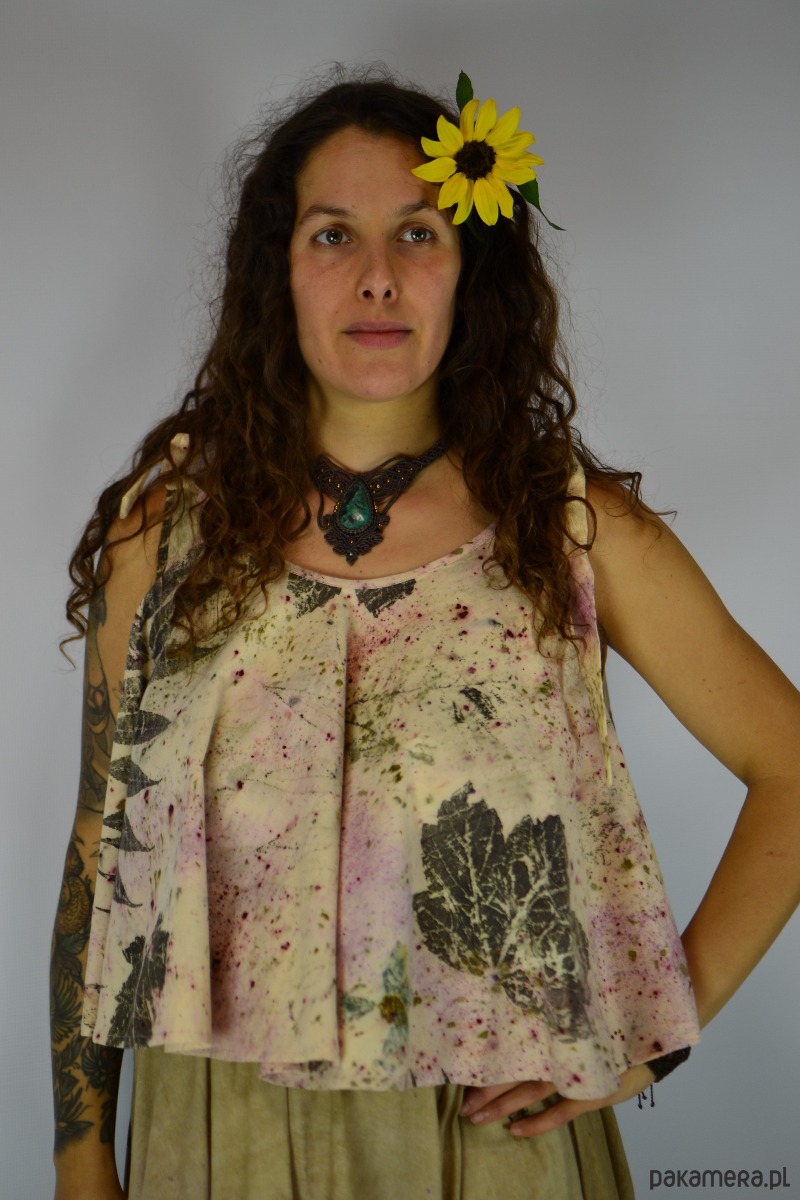 Bluzka z pełnego koła barwiona naturalnie techniką ecoprint