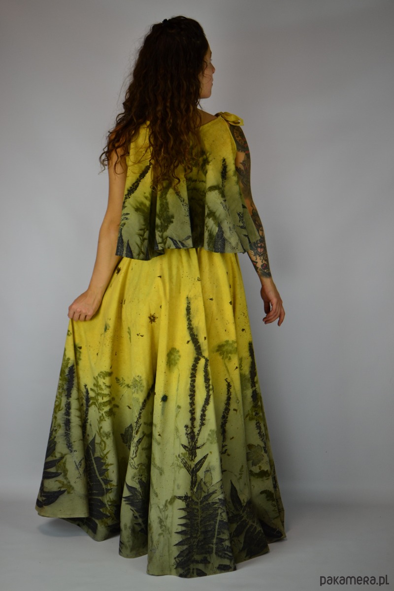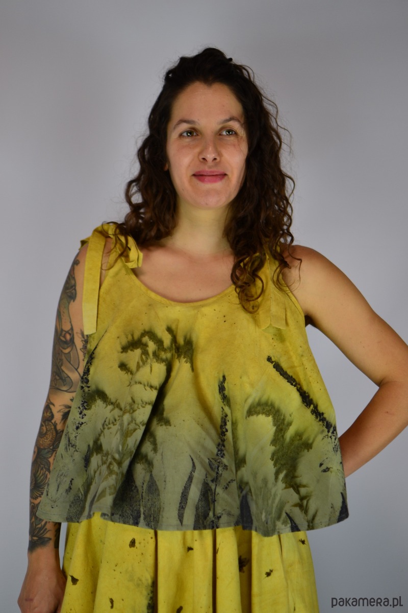 Bluzka z pełnego koła barwiona naturalnie techniką ecoprint