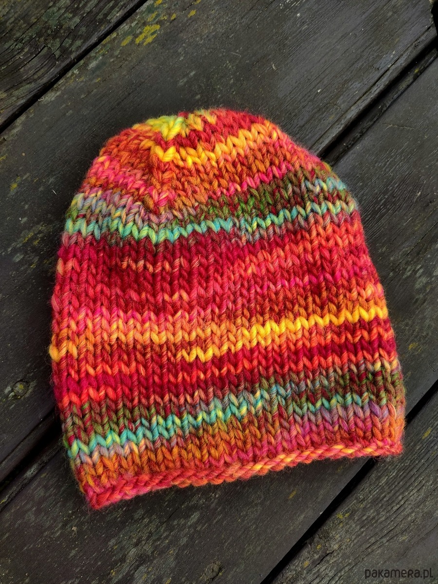 Gruba, ciepła, mięsista i mięciutka czapa wykonana ręcznie na drutach z hiszpańskiej włóczki w pięknych soczystych kolorach (53% wełna, 47% akryl), przyjemna w dotyku. Czapka jest bezszwowa, DWUSTRONNA.