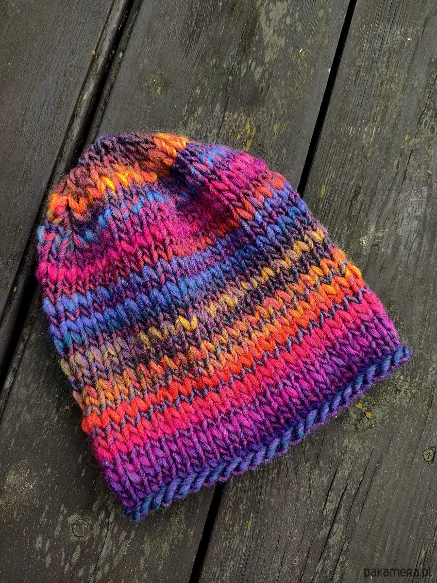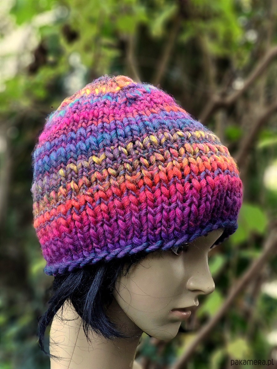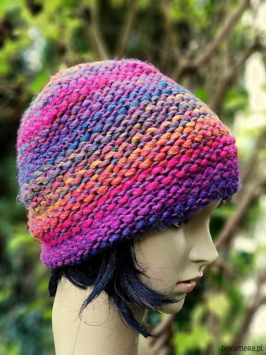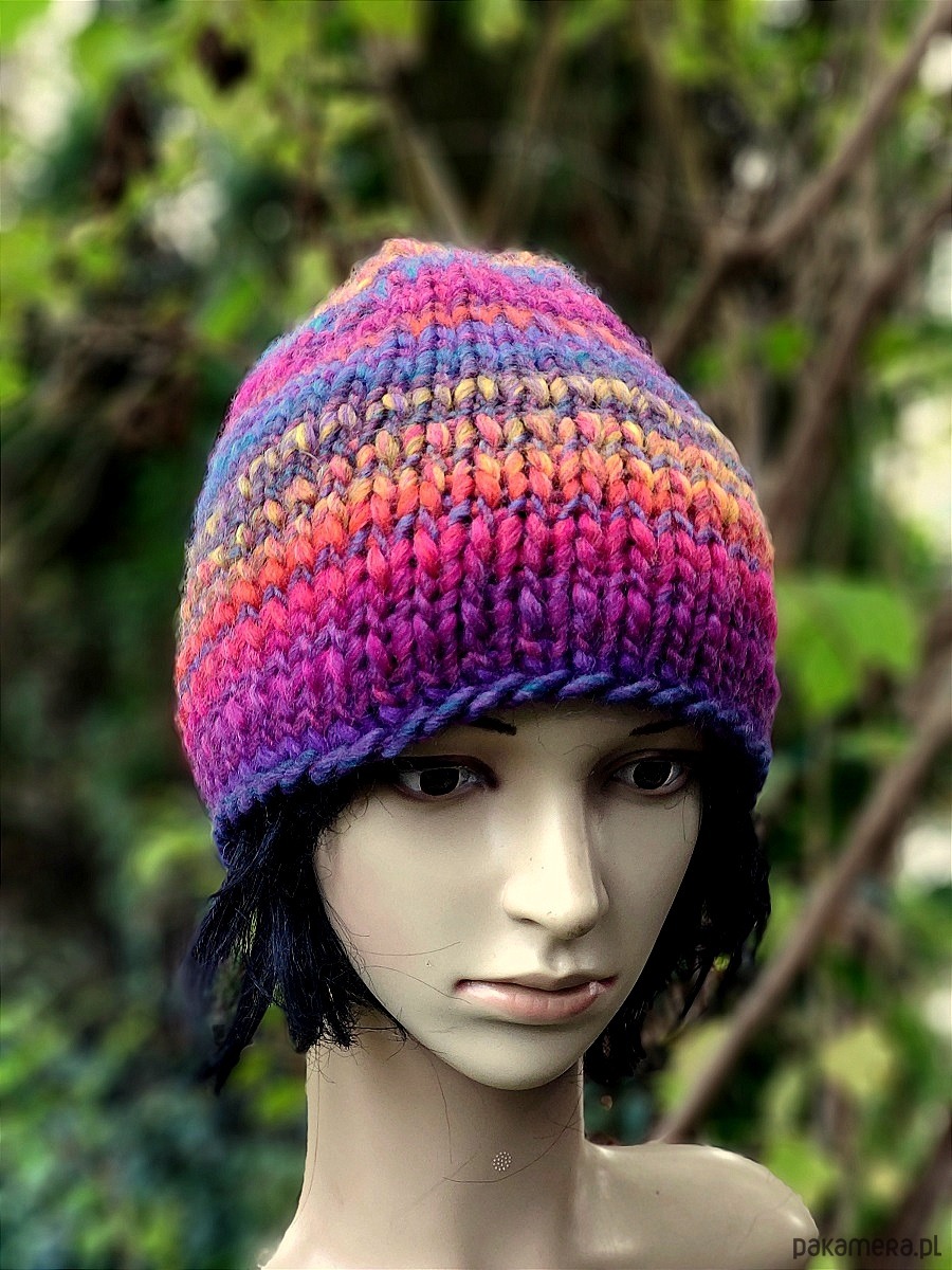Gruba, ciepła, mięsista i mięciutka czapa wykonana ręcznie na drutach z włoskiej włóczki w pięknych soczystych kolorach (53% wełna, 47% akryl), przyjemna w dotyku. Czapka jest bezszwowa, DWUSTRONNA.