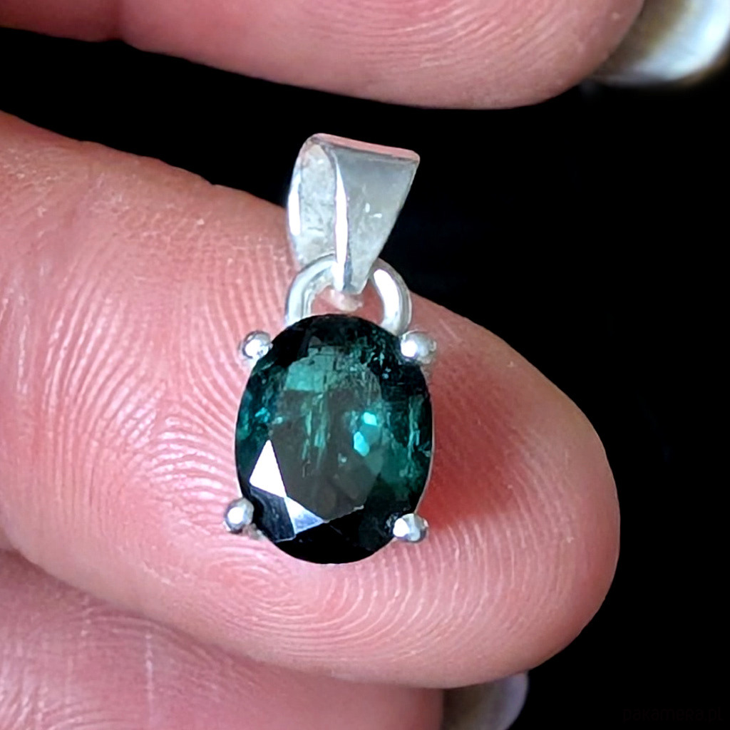 Rzadki, bardzo oryginalny kamień, naturalny indygolit jest szlachetną odmianą turmalinu. Srebro pr. 925, piękny głęboki kolor. Wymiary oprawy kamienia 9 x 7 mm. Długość z krawatką 17 mm. Waga wisiorka 1,33 grama. Zawieszka wykonana przez dostawcę kamieni. Wisiorek zostanie zapakowany w ozdobne pudełeczko.