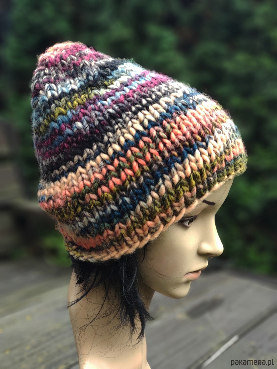 Gruba, ciepła, mięsista i mięciutka czapa wykonana ręcznie na drutach z hiszpańskiej włoczki w pięknych soczystych kolorach (53% wełna, 47% akryl), przyjemna w dotyku. Czapka jest bezszwowa, DWUSTRONNA.