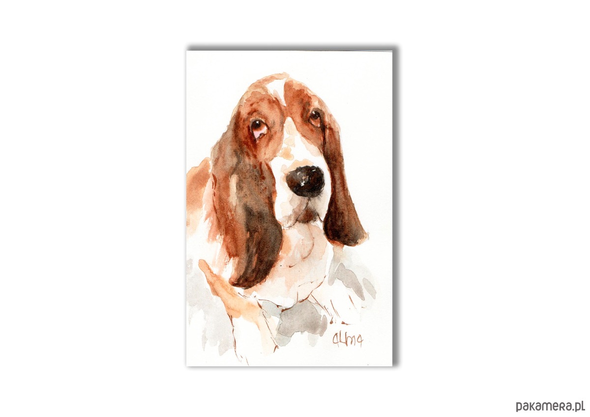 Basset hound akwarela ręcznie malowana