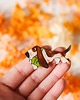 Przypinka jest starannie zapakowana w tekturowy kartonik, dzięki czemu świetnie nadaje się na drobny, pełen wdzięku prezent.