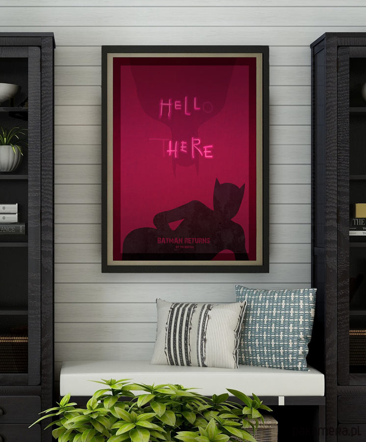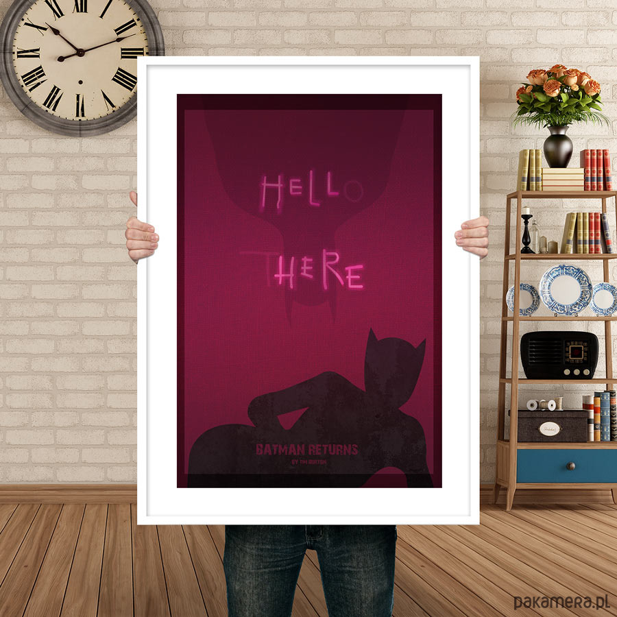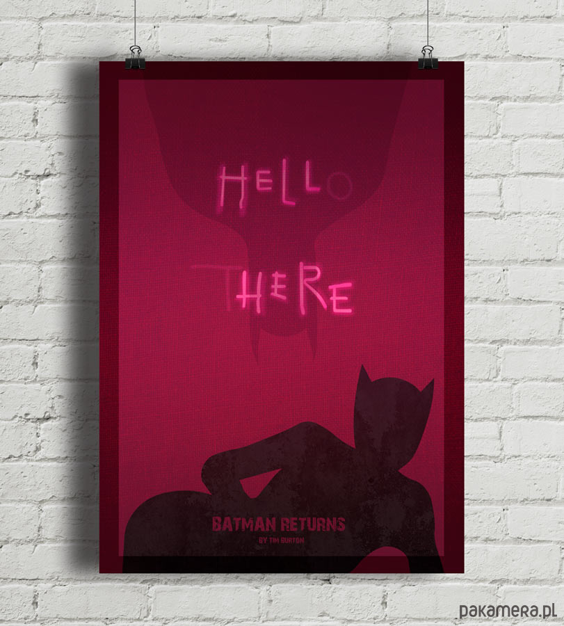 Plakat z autorską grafiką inspirowaną filmem "Batman Returns", reż. Tim Burton.