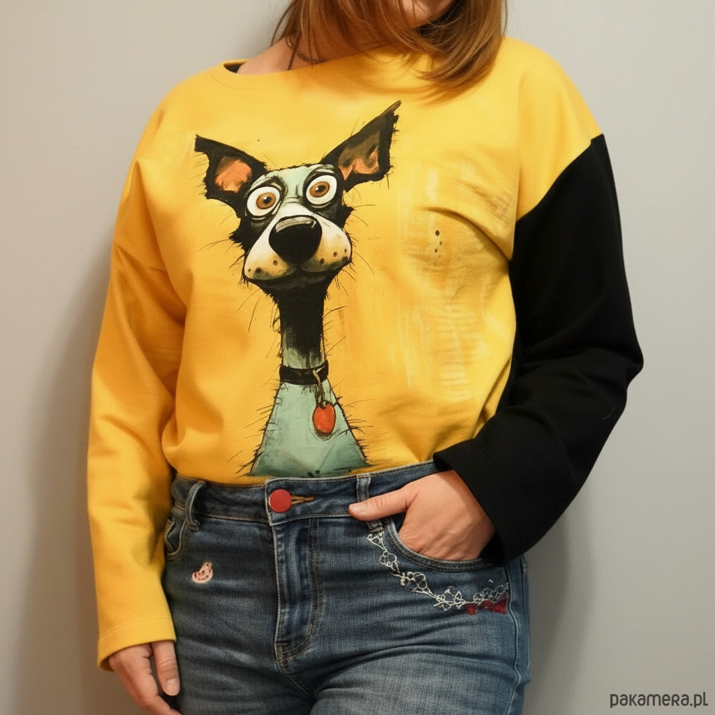 #bluzadamska #bluzaoversize #bluzabawełniana #zwariowanypies #kochampsy #doglover #artystycznabluzka #polskamarka #mniejwięcej #modazdobraenergia #slowfashion #unikat #prezentdlaniej