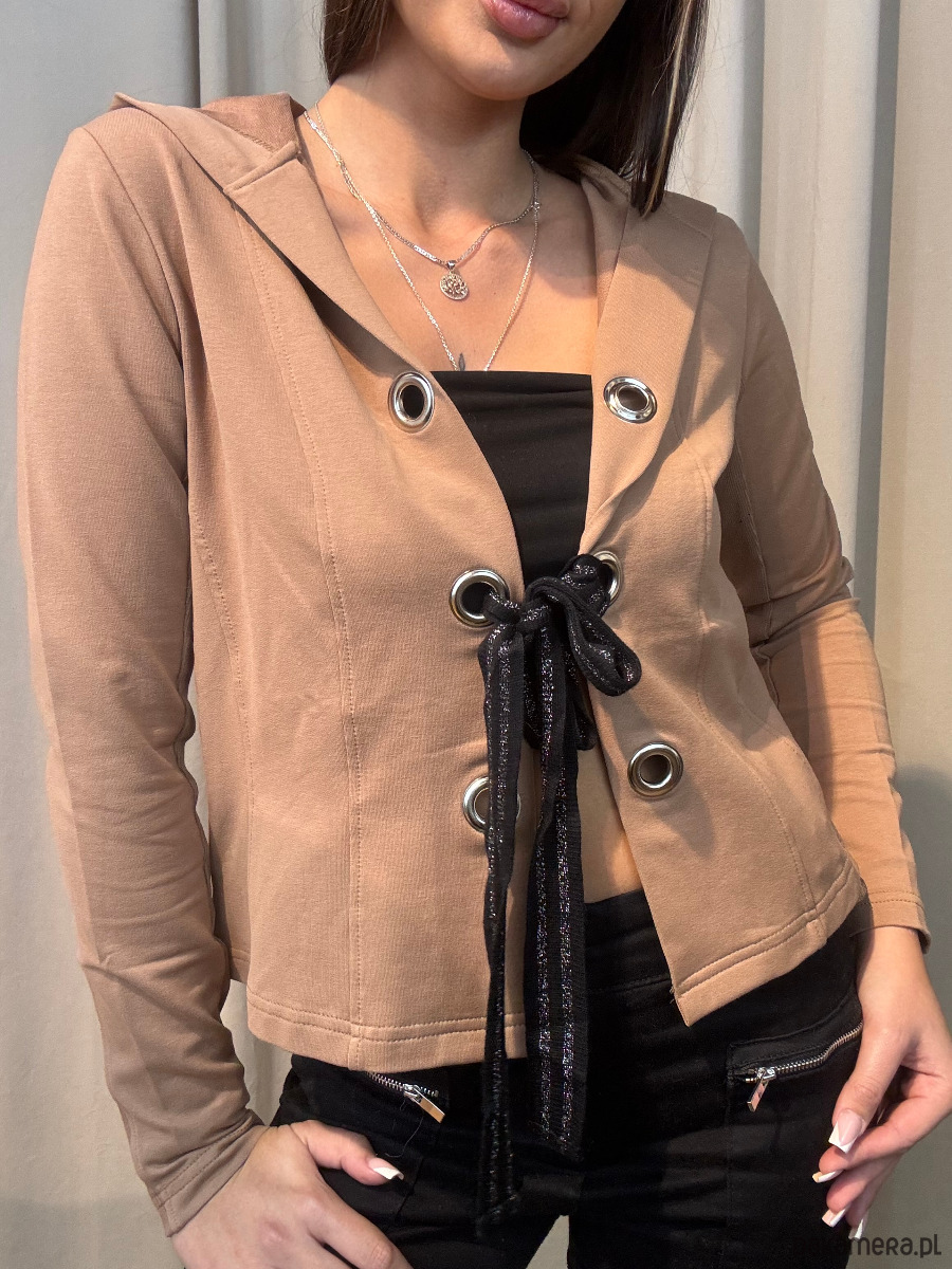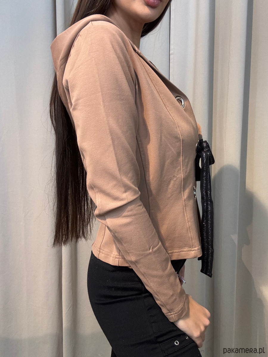 Bawełniana bluza z kapturem. Wiązana za pomocą wstążki.