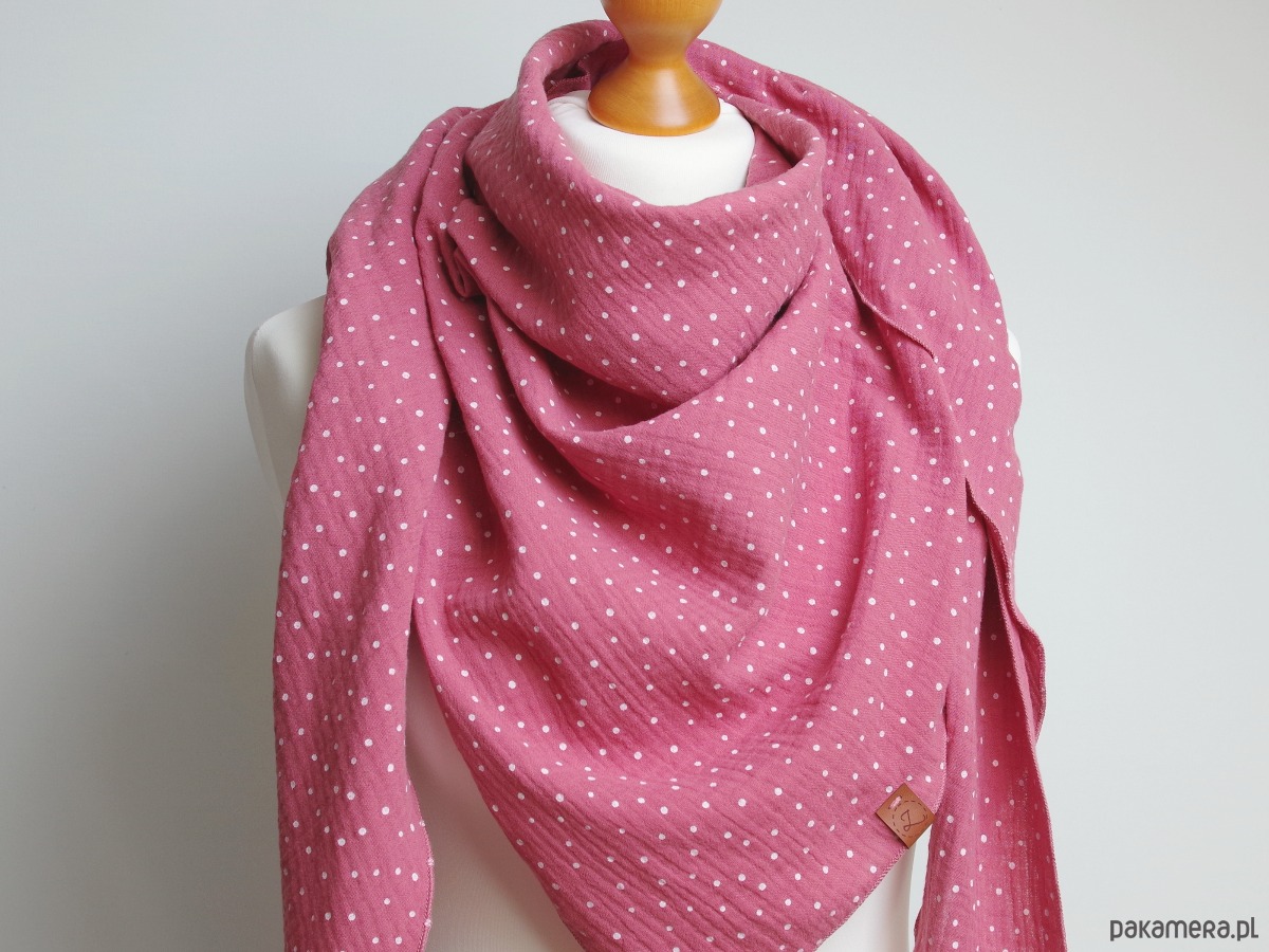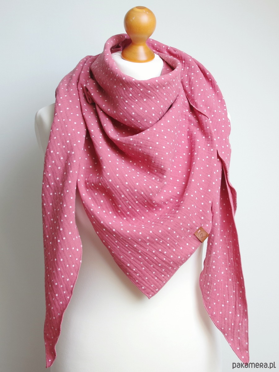 Miękka i delikatna, bardzo przyjemna w dotyku chusta damska muślinowa w kolorze indyjskiego różu. Chusta została uszyta z delikatnej tkaniny bawełnianej - muślinu, który jest bardzo przyjemny dla skóry.