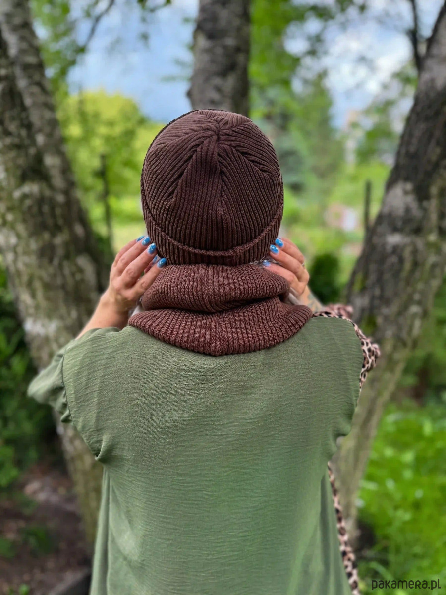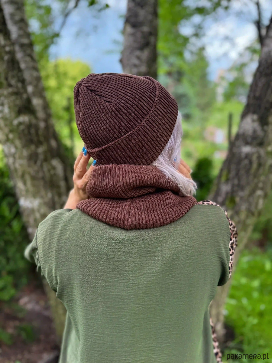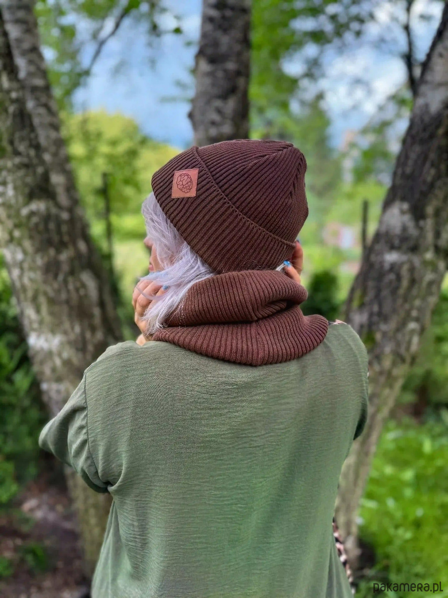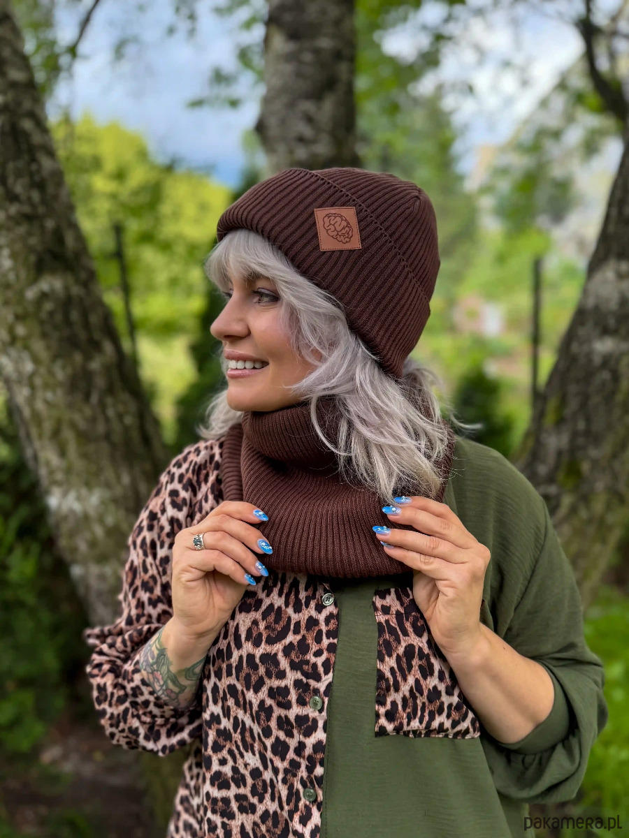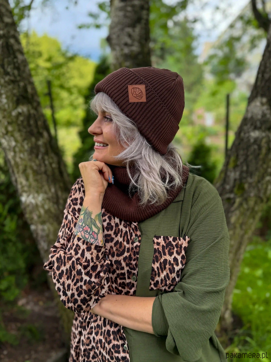 Bawełniana czapka beanie logo ekoskórka Brąz