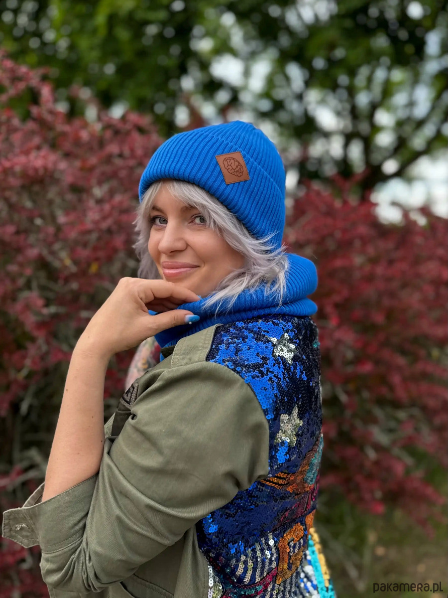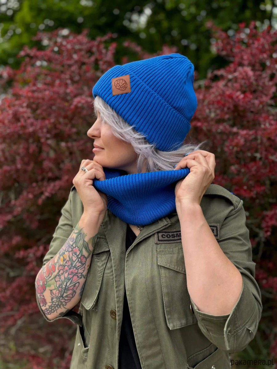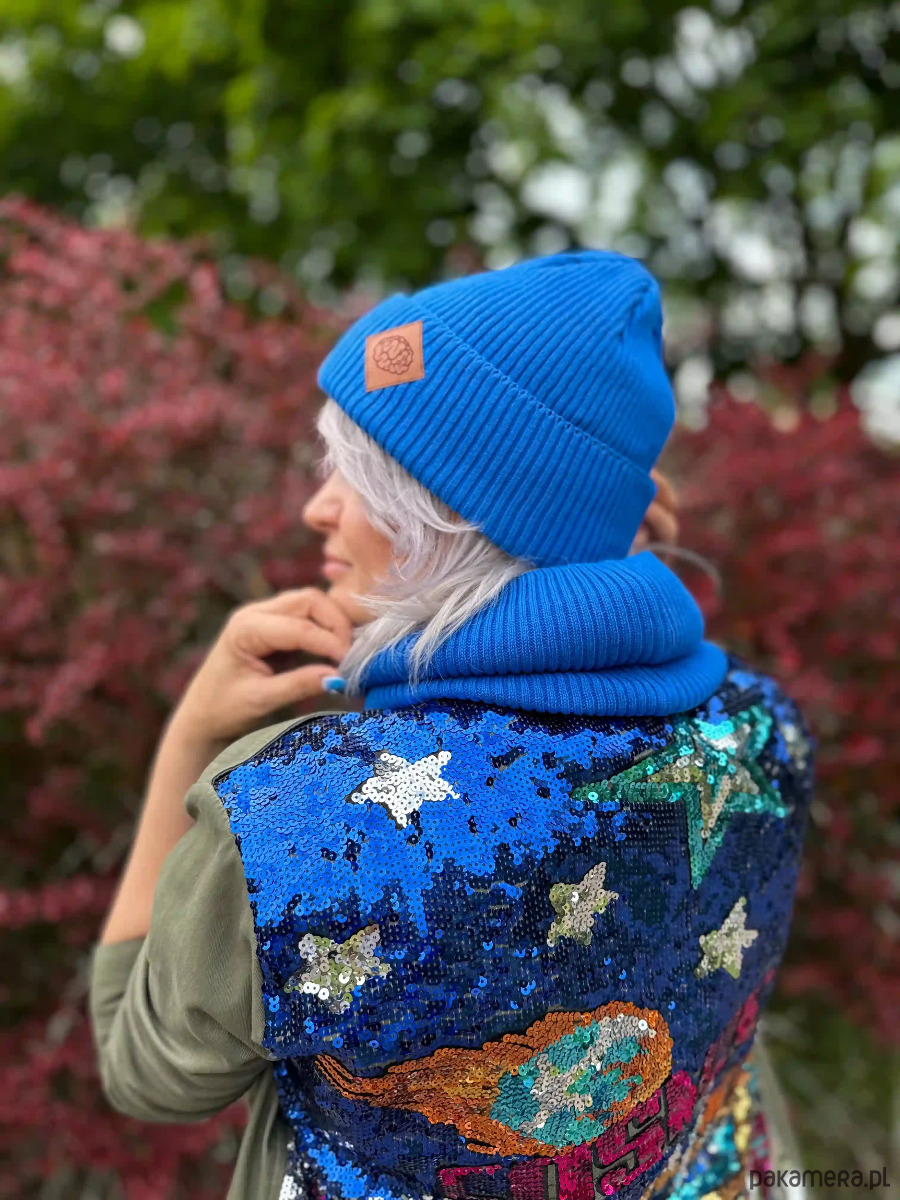 Bawełniana czapka beanie logo ekoskórka Niebieski Kobalt