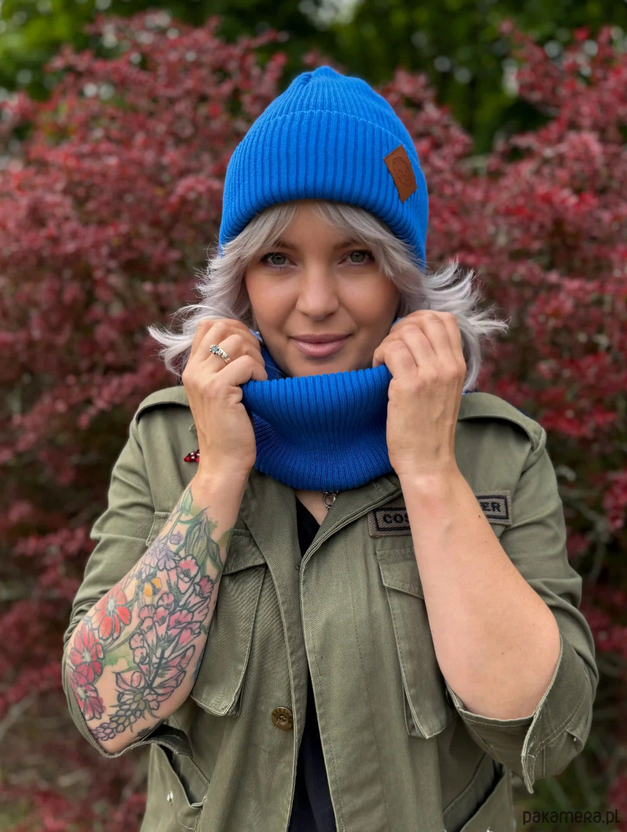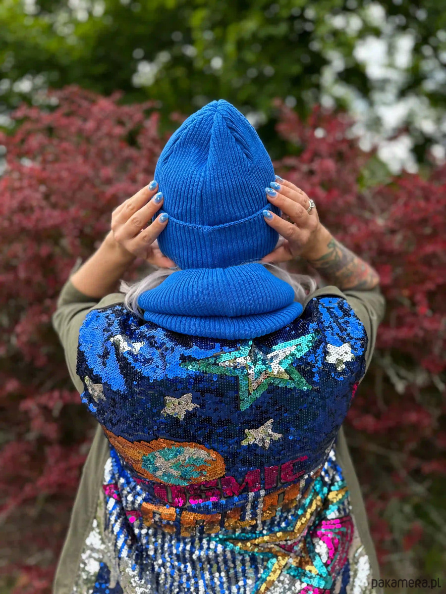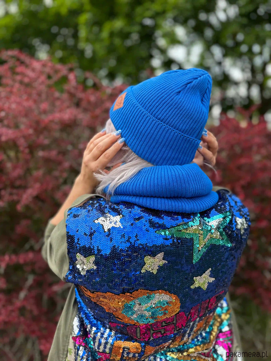 Bawełniana czapka beanie logo ekoskórka Niebieski Kobalt