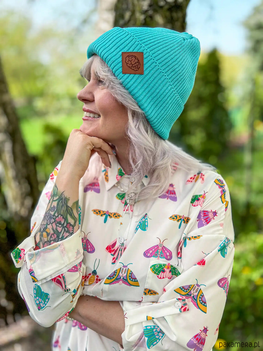 Wykonana z miękkiej bawełny, przewiewna i tak wygodna, że będziesz chciał/a nosić ją nawet w cieplejsze dni i do tego na dwa sposoby. Bo to czapka 2w1 - możesz ją nosić klasycznie, podwijając brzeg (czapka beanie), albo w długiej wersji gdy masz ochotę na trochę klasyki (czapka smerfetka, czapka luźna). Dwustronne, ekoskórkowe logo z mózgiem, po lewej stronie to taka mała wisienka na czapce – mówi światu, że masz styl i luz.