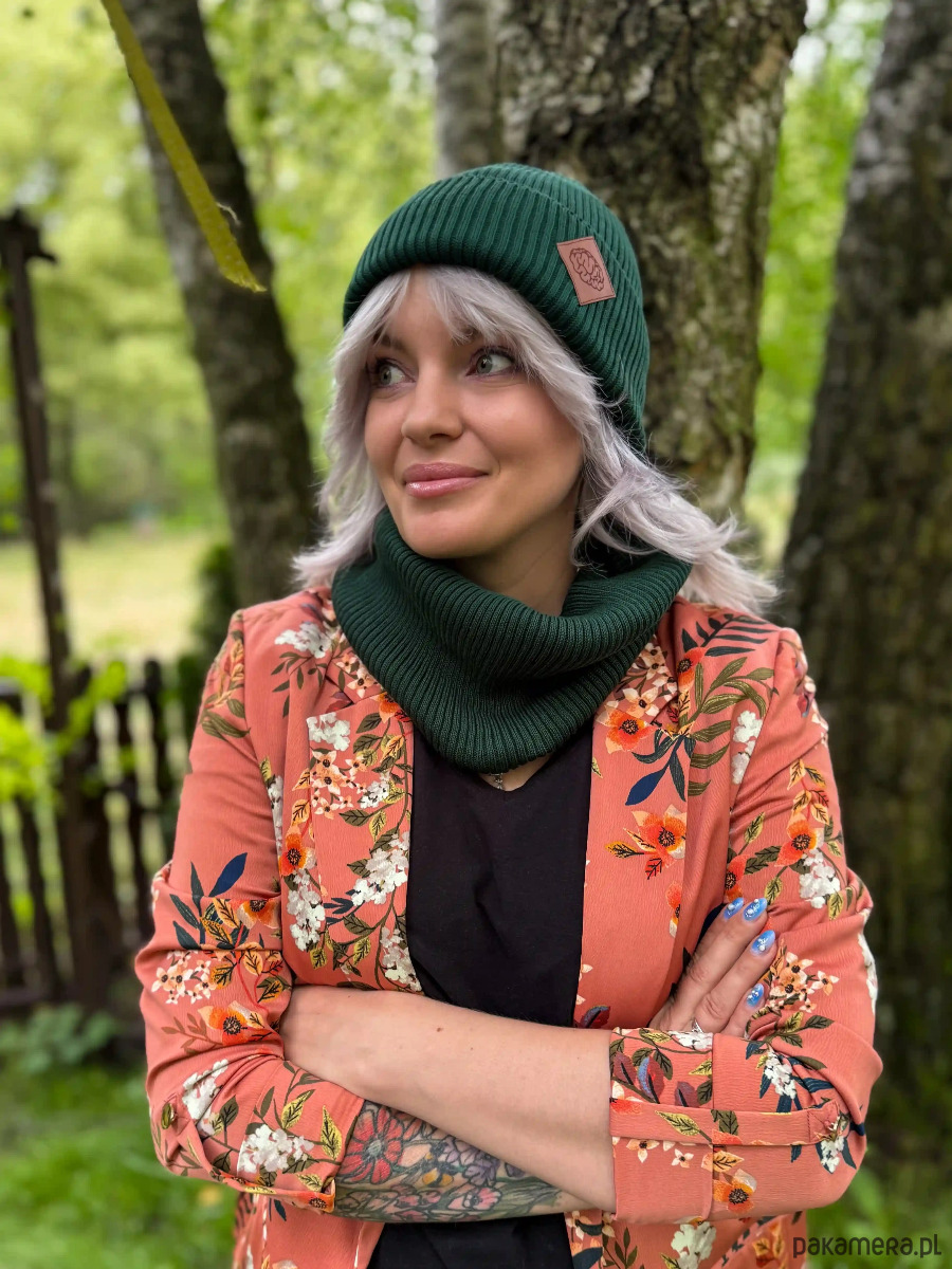 Bawełniana czapka beanie logo ekoskórka Zielony