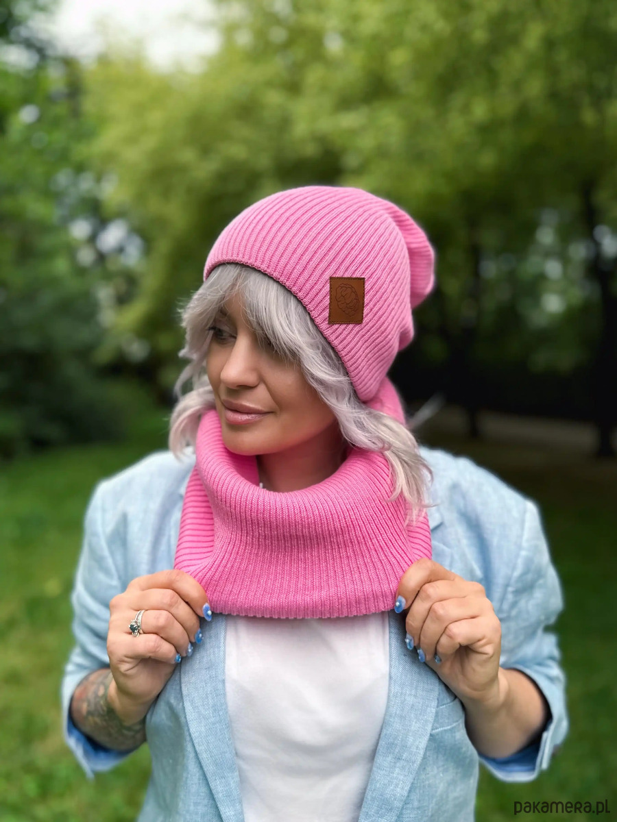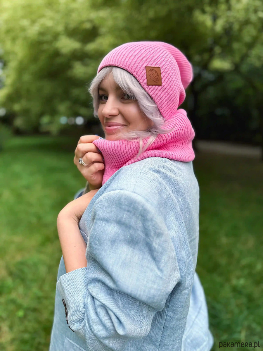 Bawełniana czapka jesienna logo ekoskórka Różowy