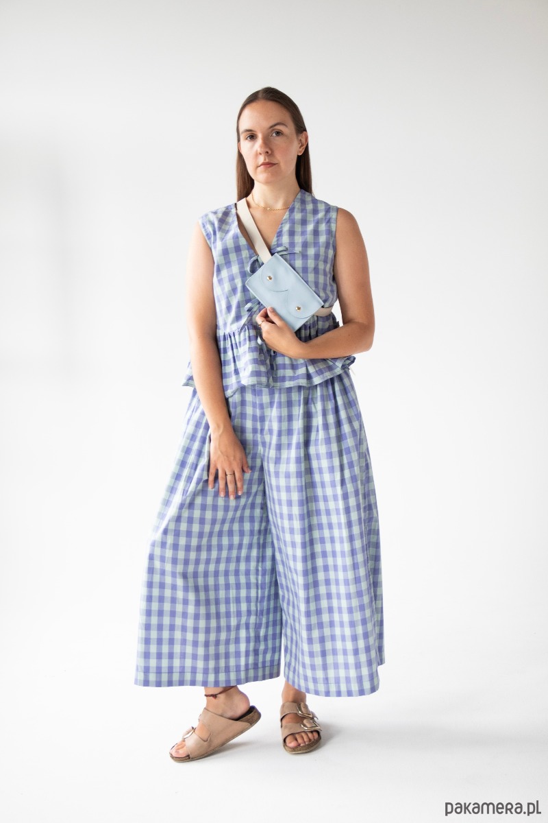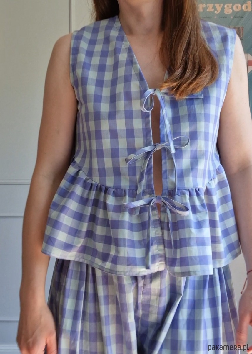 Jest wiązana na trzy troki, które możesz mieć na plecach lub z przodu. Przez to jest uniwersalna na wiele okazji.
