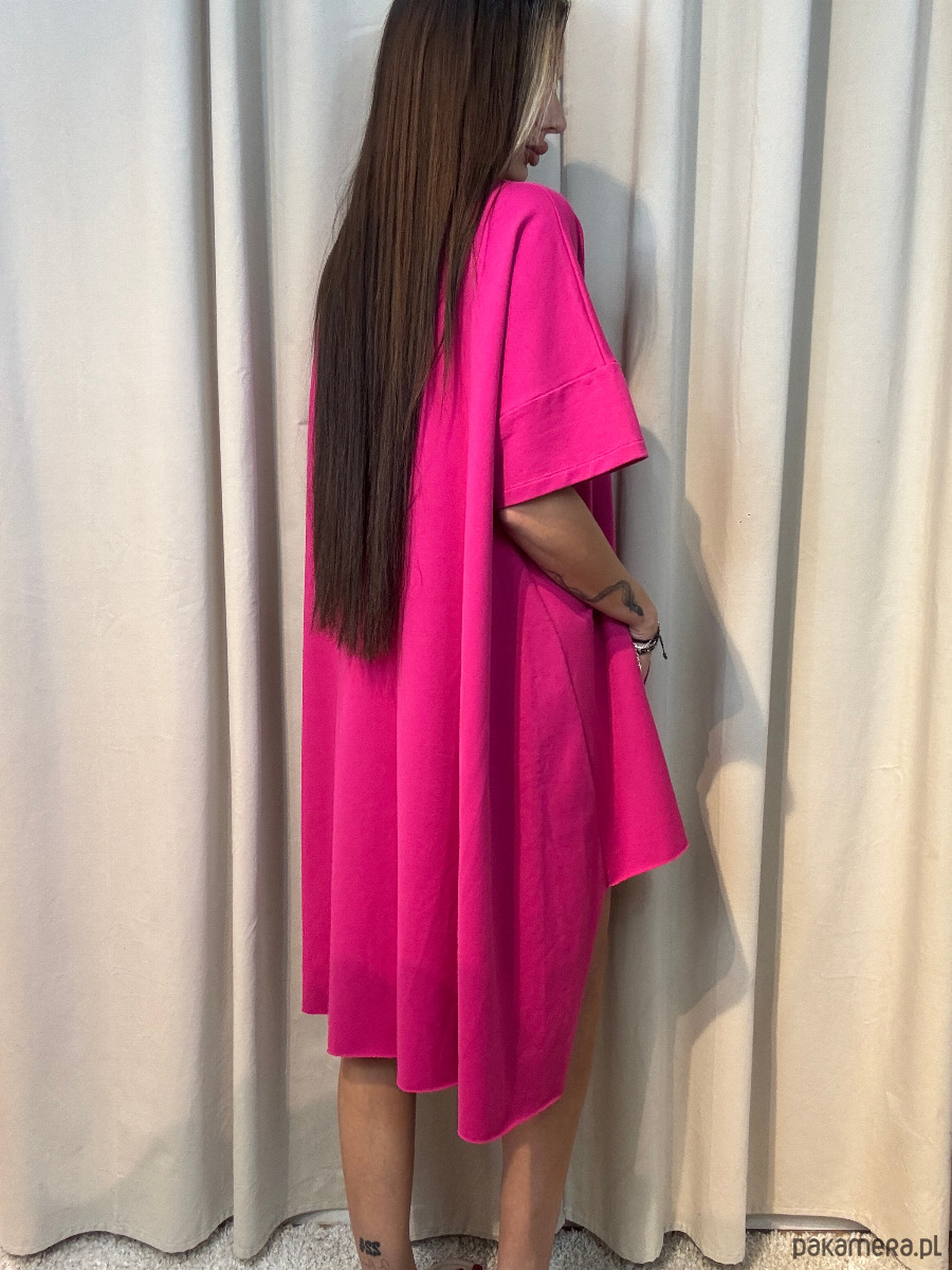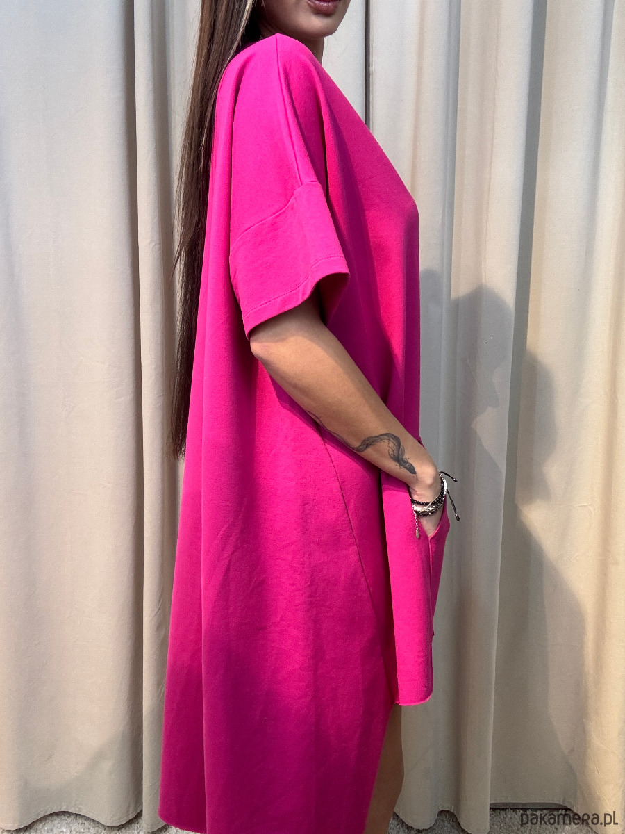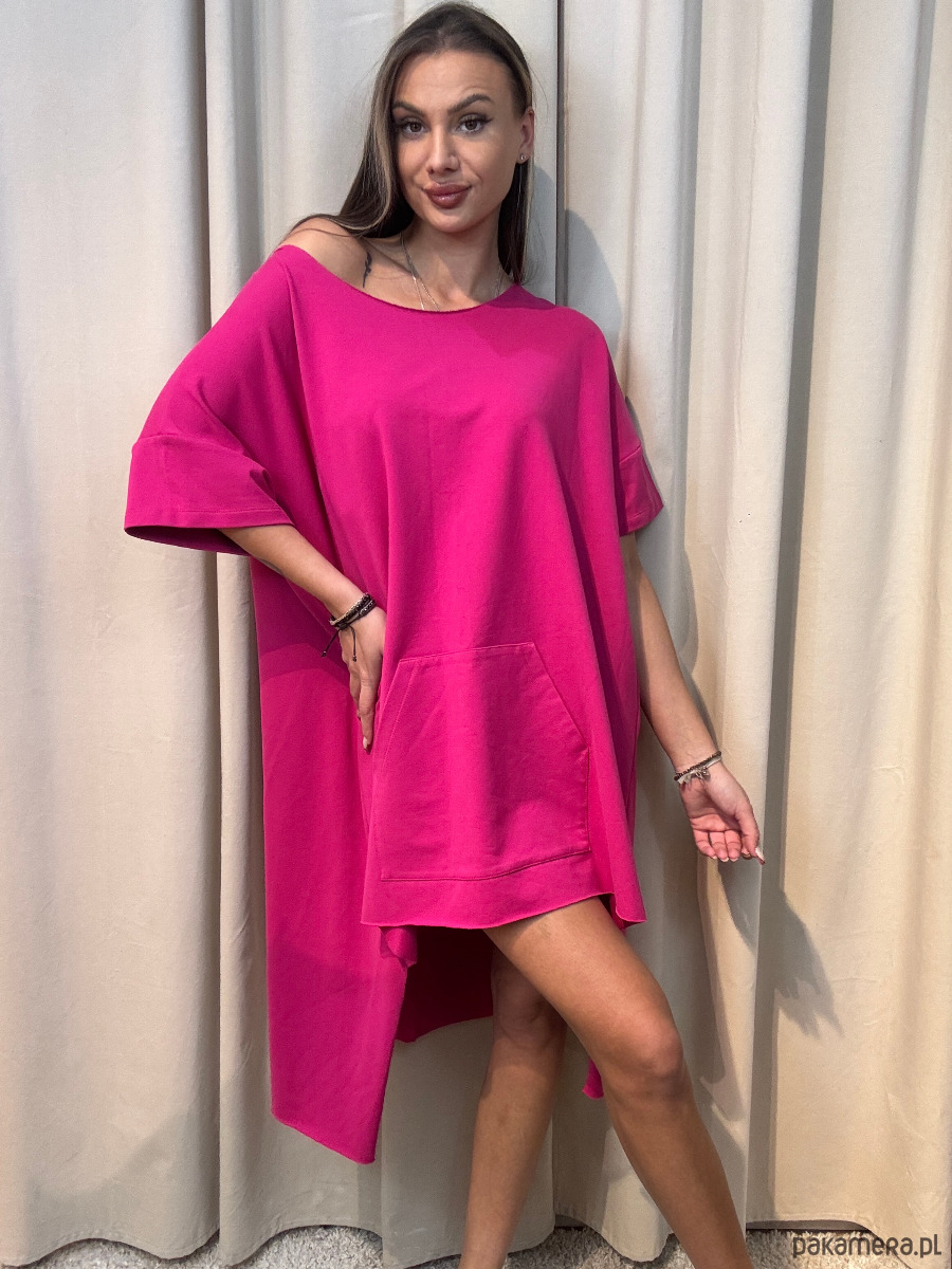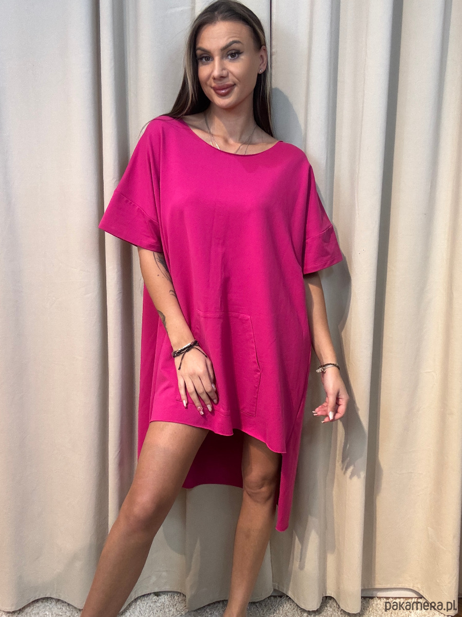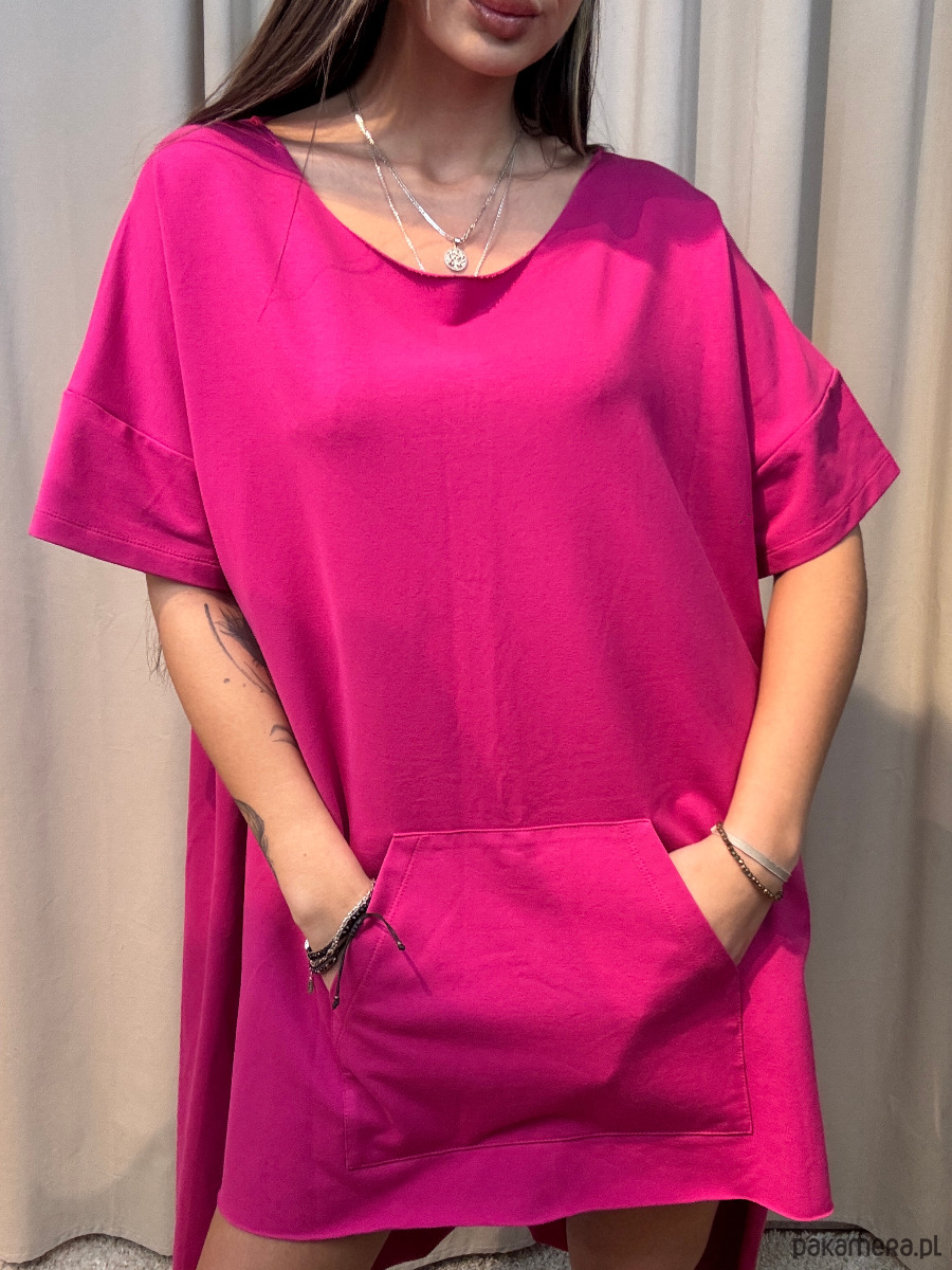 Bawełniana sukienka/tunika w kolorze fuksji, z kieszenią w centralnej części.