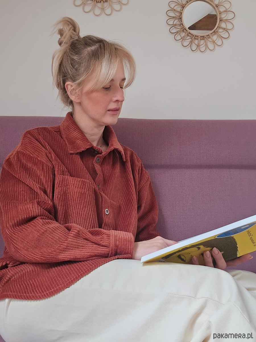 Wysokiej jakości naturalny materiał: Wykonana z bawełnianego sztruksu, zapewnia komfort przez cały dzień, oddychając skórze i dopasowując się do sylwetki. Sztruks o grubym prążku nadaje tkaninie wyrazisty charakter i retro elegancję.