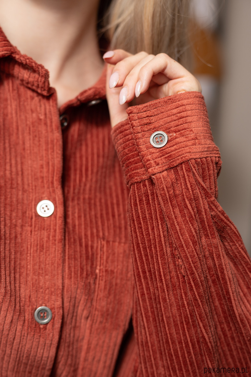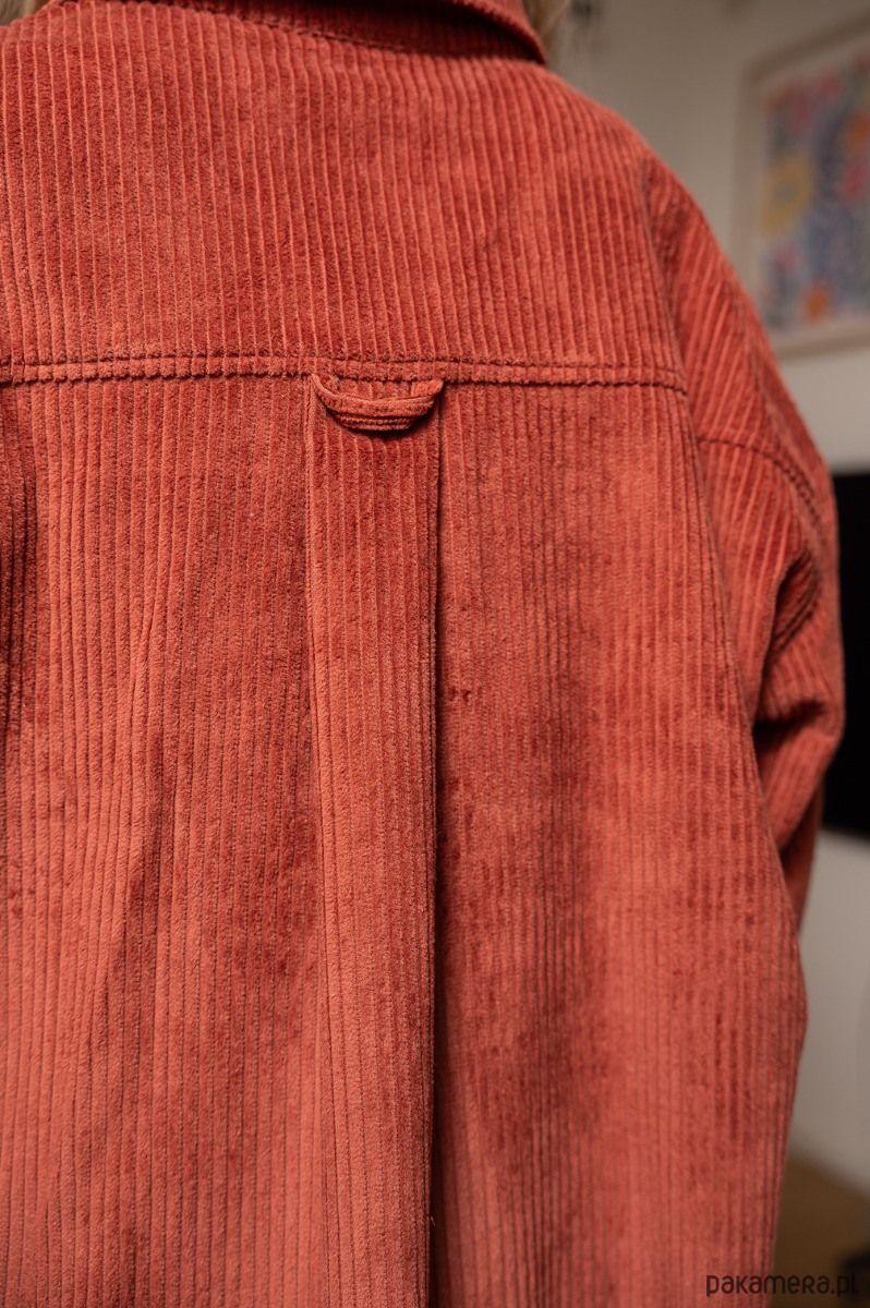 Wysokiej jakości naturalny materiał: Wykonana z bawełnianego sztruksu, zapewnia komfort przez cały dzień, oddychając skórze i dopasowując się do sylwetki. Sztruks o grubym prążku nadaje tkaninie wyrazisty charakter i retro elegancję.
