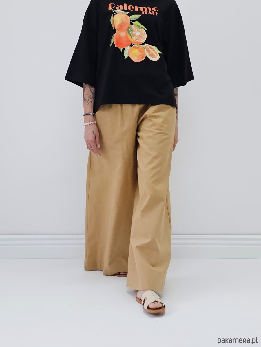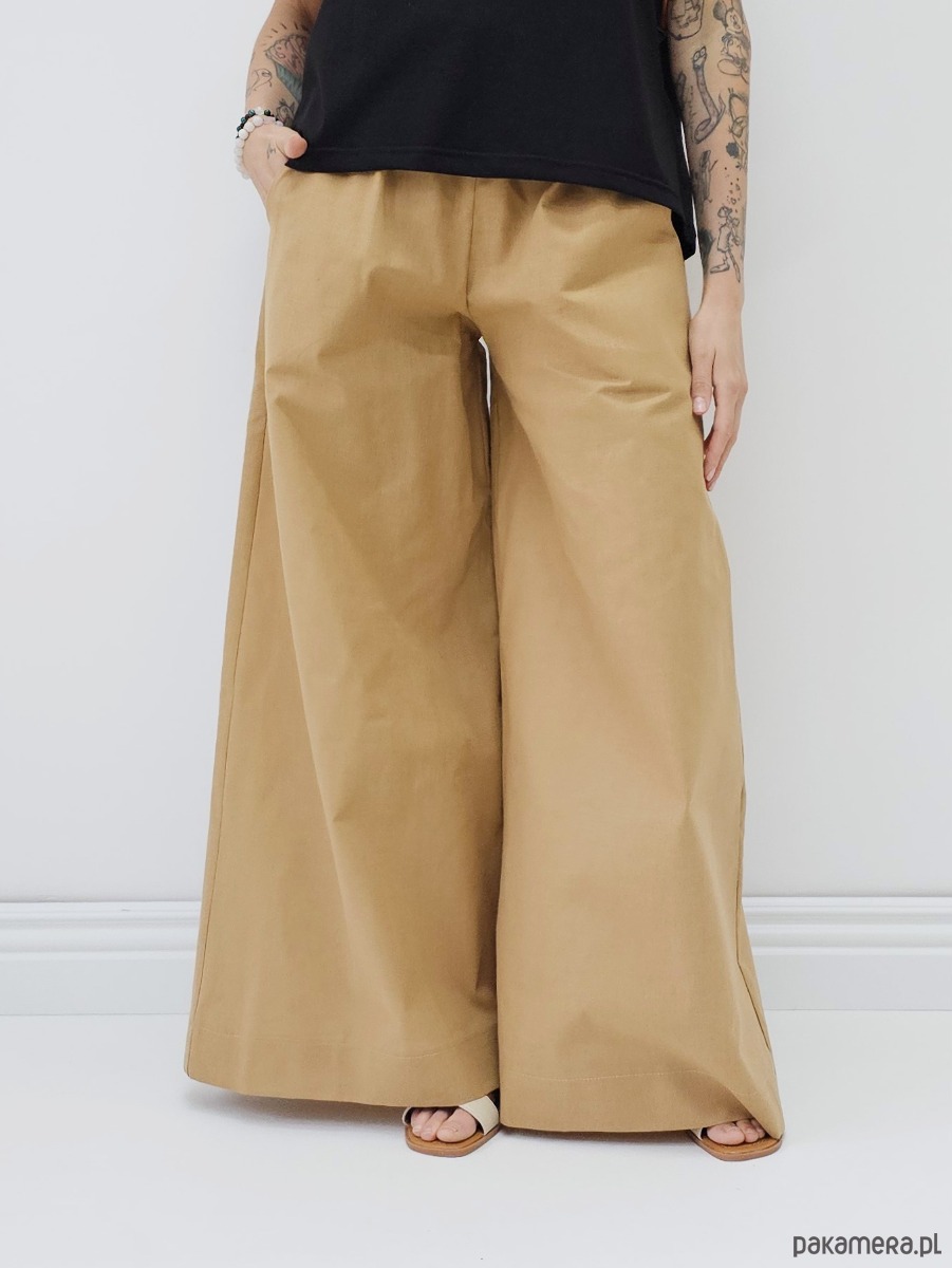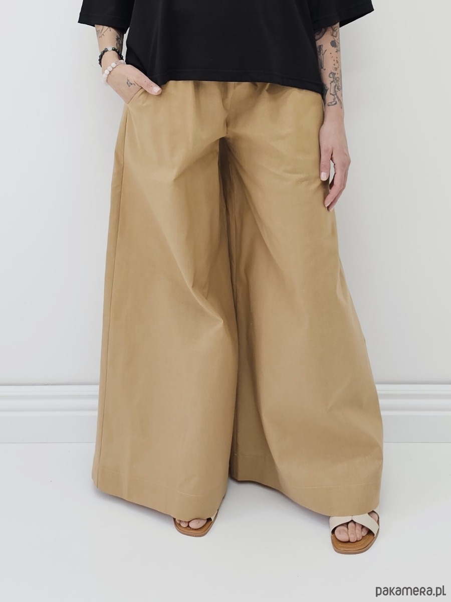 Bardzo lekkie i zwiewne bawełniane szwedy z szerokimi nogawkami.