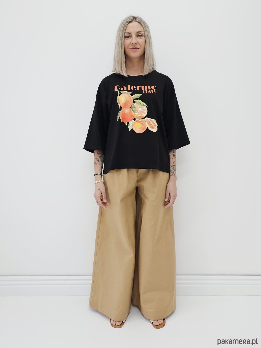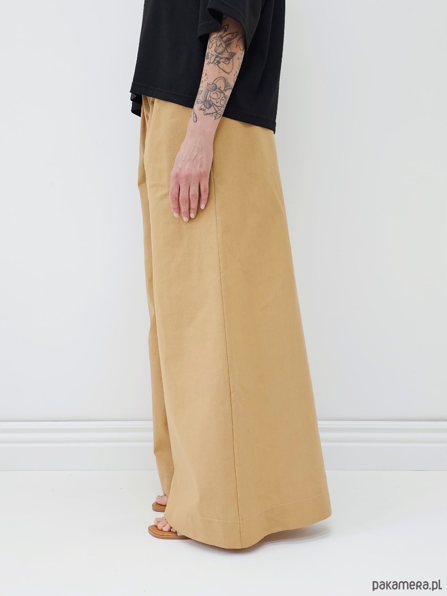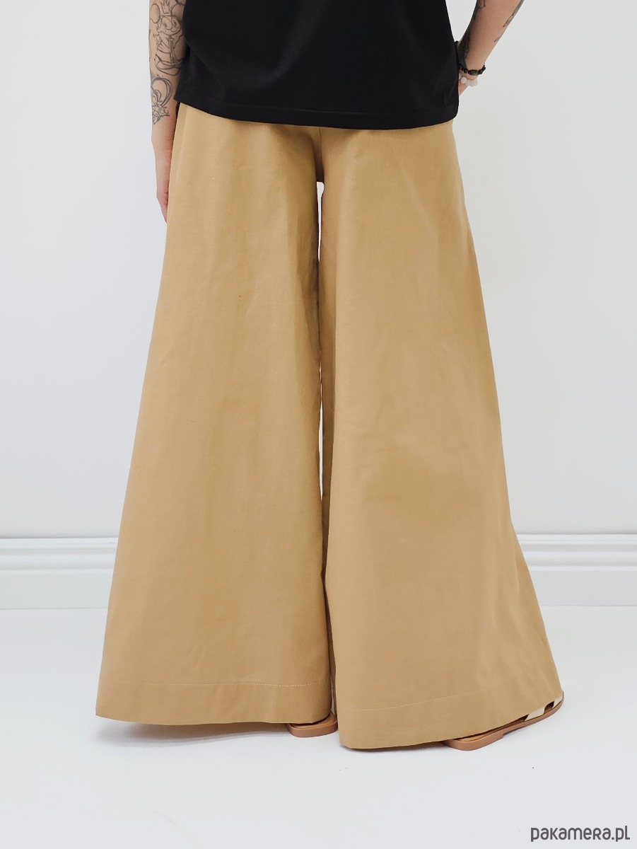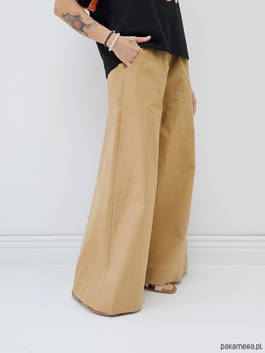 Bardzo lekkie i zwiewne bawełniane szwedy z szerokimi nogawkami.