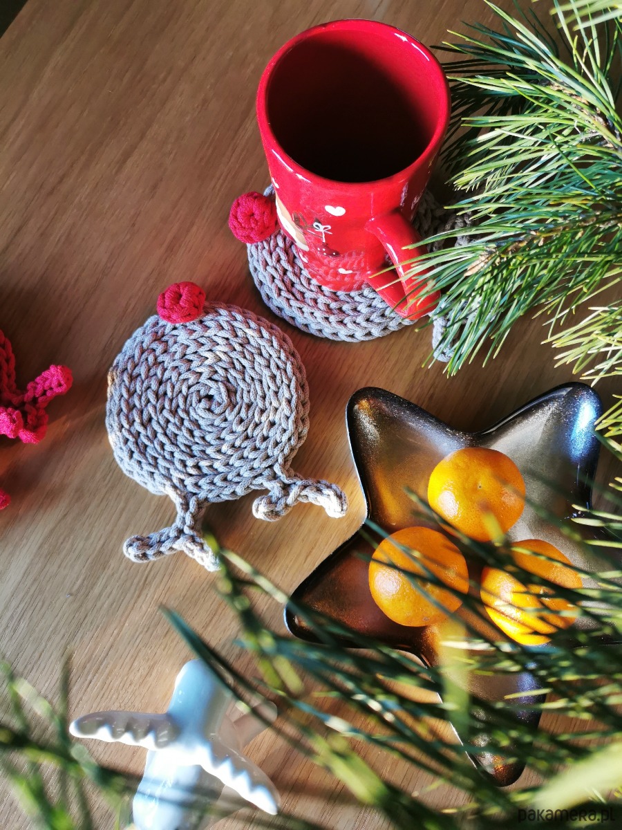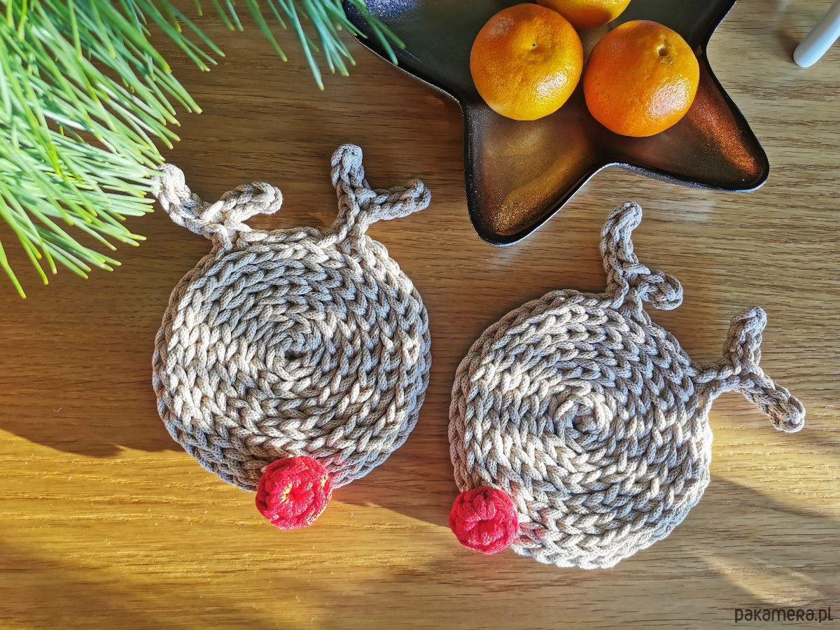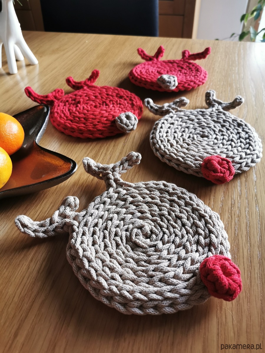 Wprowadź do swojego domu odrobinę świątecznej magii dzięki uroczym podkładkom pod kubek w kształcie renifera. Każdy renifer jest starannie wykonany z miękkiego bawełnianego sznurka, dzięki czemu nie tylko pięknie zdobi świąteczny stół, ale też doskonale chroni jego powierzchnię przed gorącymi kubkami, szklankami i zimowymi napojami.