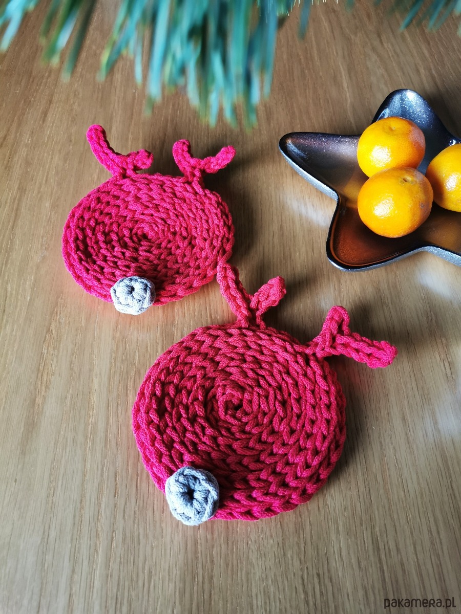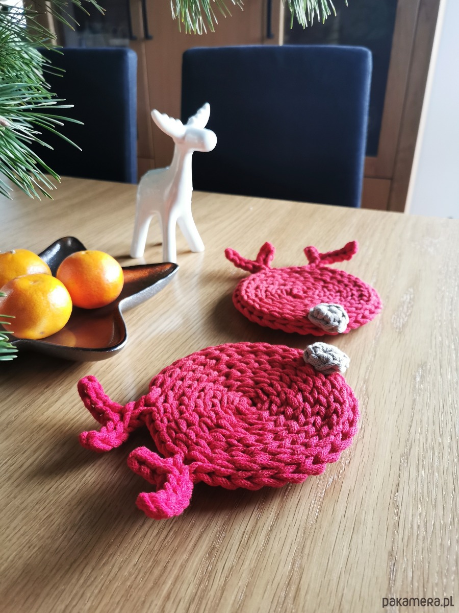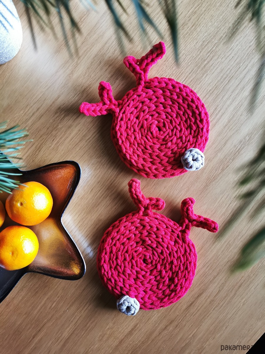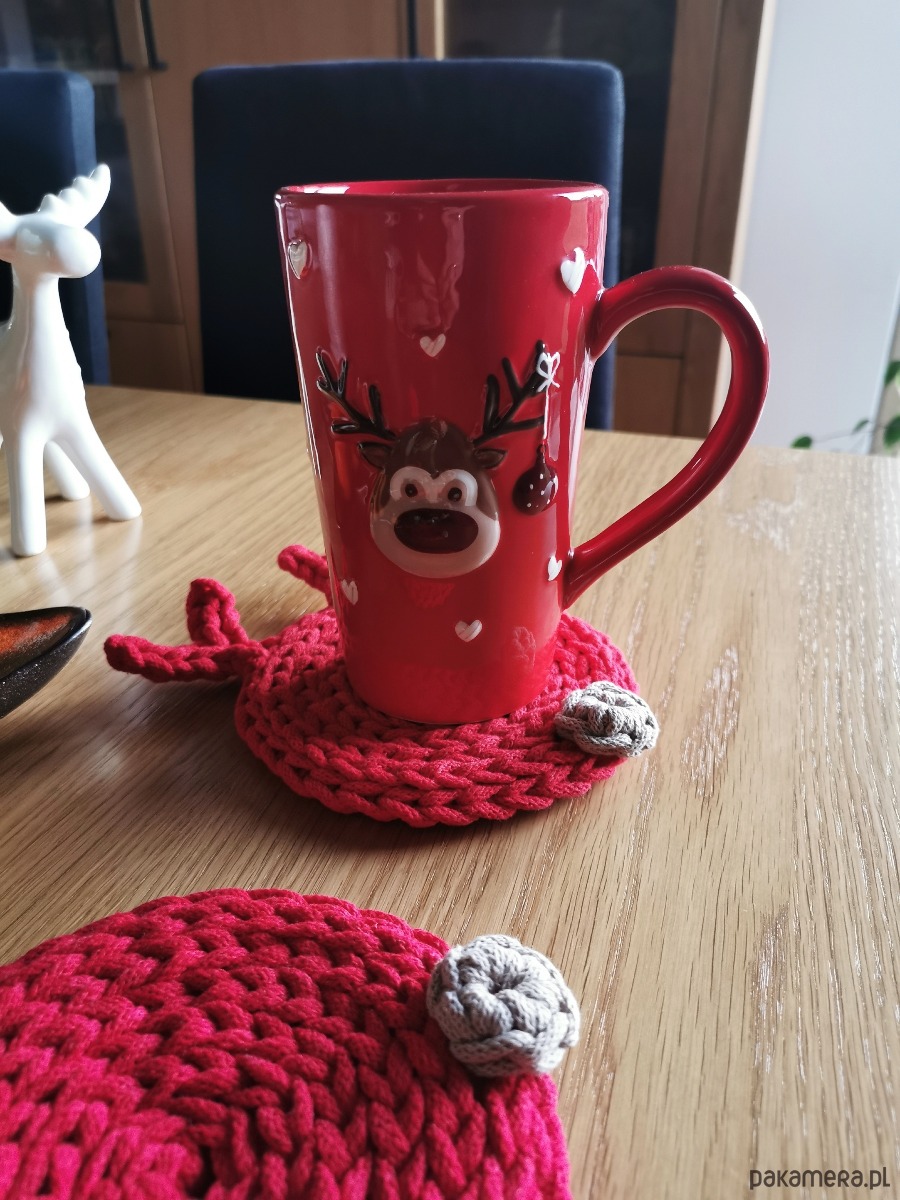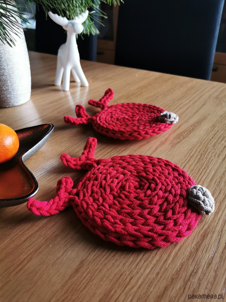 Wprowadź do swojego domu odrobinę świątecznej magii dzięki uroczym podkładkom pod kubek w kształcie renifera. Każdy renifer jest starannie wykonany z miękkiego bawełnianego sznurka, dzięki czemu nie tylko pięknie zdobi świąteczny stół, ale też doskonale chroni jego powierzchnię przed gorącymi kubkami, szklankami i zimowymi napojami.