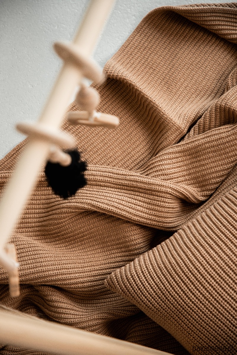 Brązowy kocyk z ozdobnym prążkowym splotem jest klasykiem i zachwyca piękną dzianiną z certyfikowanej bawełny organicznej. Jest miękki, delikatny i przyjemny dla skóry.