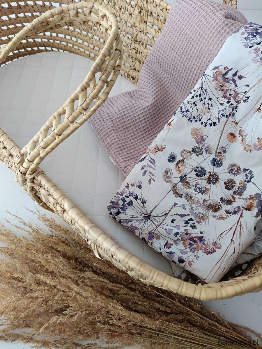 Pierwszy kocyk dla Twojego maluszka. Najmniejszy jaki mamy w ofercie - 75x60 cm. Dzięki swoim niewielkim rozmiar idealnie pasuje do kosza mojżeszowego, kokonu oraz do gondoli. Jest dwustronny. Wykonany ze 100% bawełny która jest bezpieczna dla delikatnej skóry niemowlęcej. I strona to gruba bawełna o ciekawej fakturze wafla , zaś druga bawełna w piękny wzór. Kocyk posiada antyalergiczne wypełnienie dzięki czemu może służyć nie tylko do drzemek w ciągu dnia ale i jako pościel. Sprawdzi się również jako mata do zabaw, przewijak. Gdy maleństwo z niego wyrośnie - nie wyrzucaj, już niedługo posłuży jako kołderka dla lalek/maskotek.