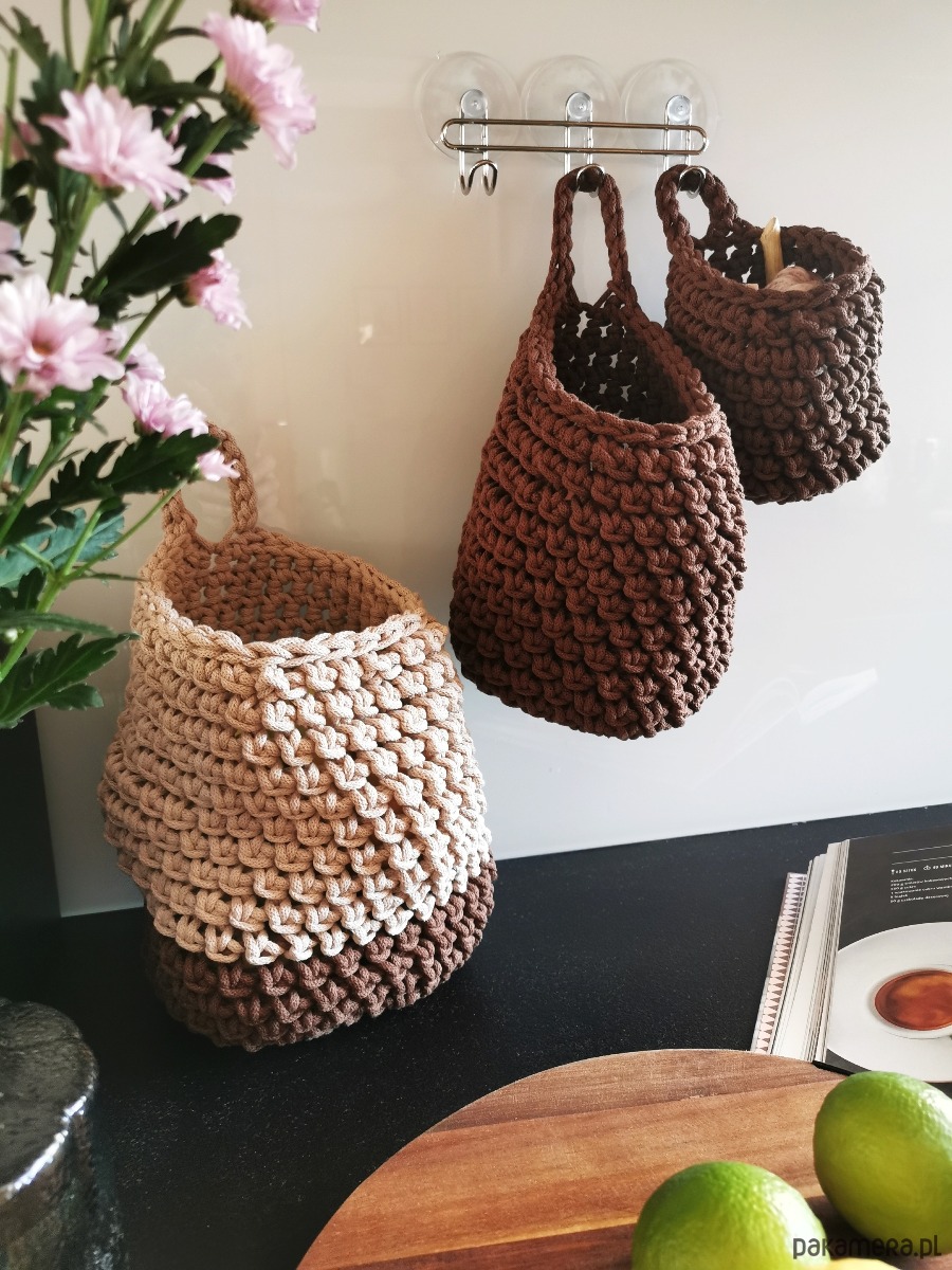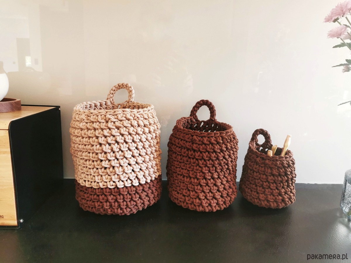 Kosze na zdjęciach są w kolorze kawowym (największy kosz to kolor beżowy + kawowy). Jeśli kosze mają być wykonane w innym kolorze (lub dwukolorowe) - proszę o informację zaraz po zakupie - karta kolorów dostępna jest w galerii zdjęć.