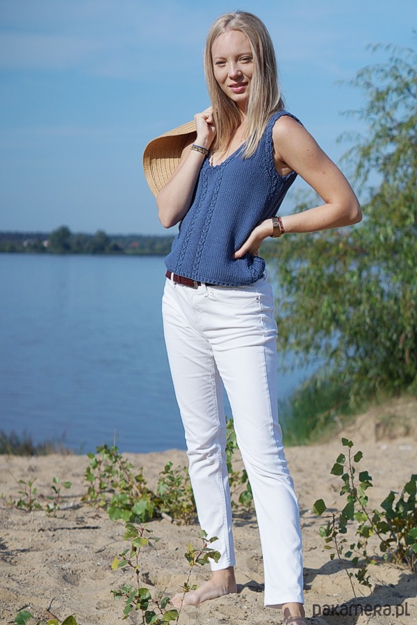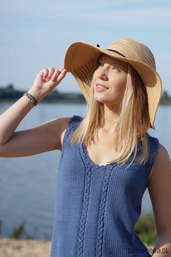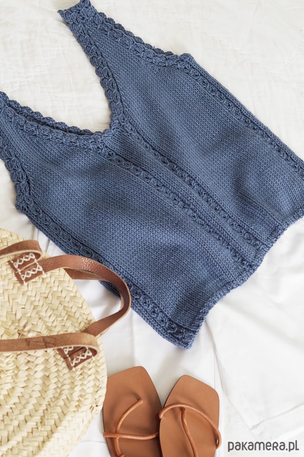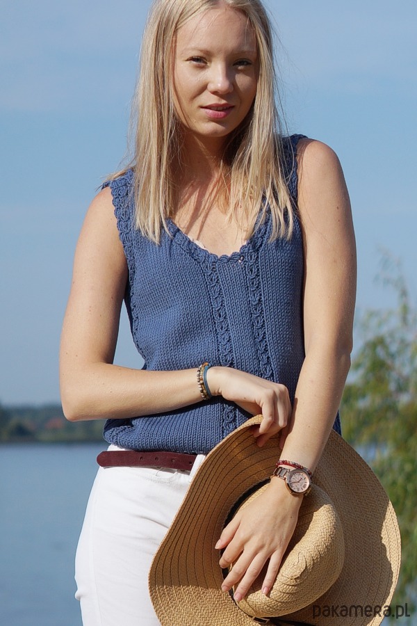 Klasyczny top wykonany ręcznie na drutach.