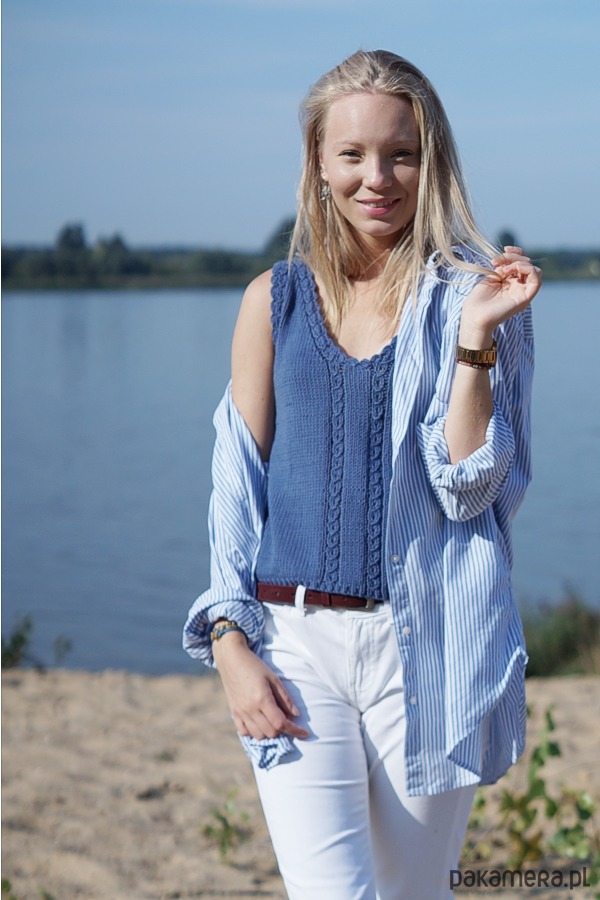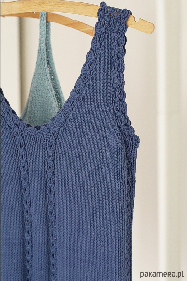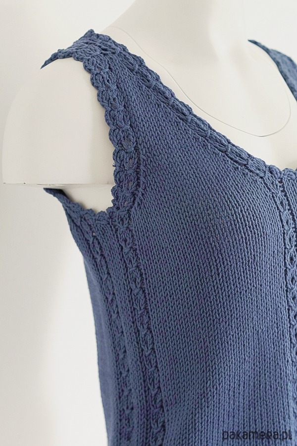 gładkim ściegiem przełamanym drobnymi ażurowymi warkoczykami.