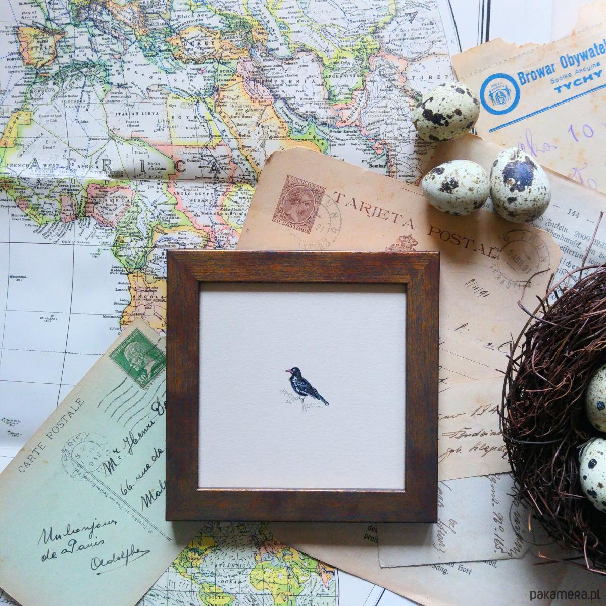 Szczegóły najlepiej widać przez szkło powiększające ;-) Pięknie prezentuje się cała kolekcja miniaturek na ścianie zebranych tematycznie - książki, kwiaty, ulubione miejsca, ptaki ...