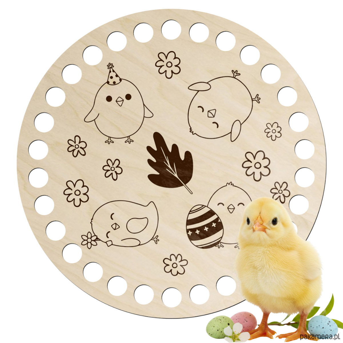 Drewniana baza do szydełkowania z wielkanocnym grawerem to wyjątkowy dodatek do rękodzieła, który pozwoli stworzyć niepowtarzalne dekoracje świąteczne. Wykonana z naturalnej sklejki brzozowej zachwyca estetyką, precyzją wykonania i świątecznym charakterem.