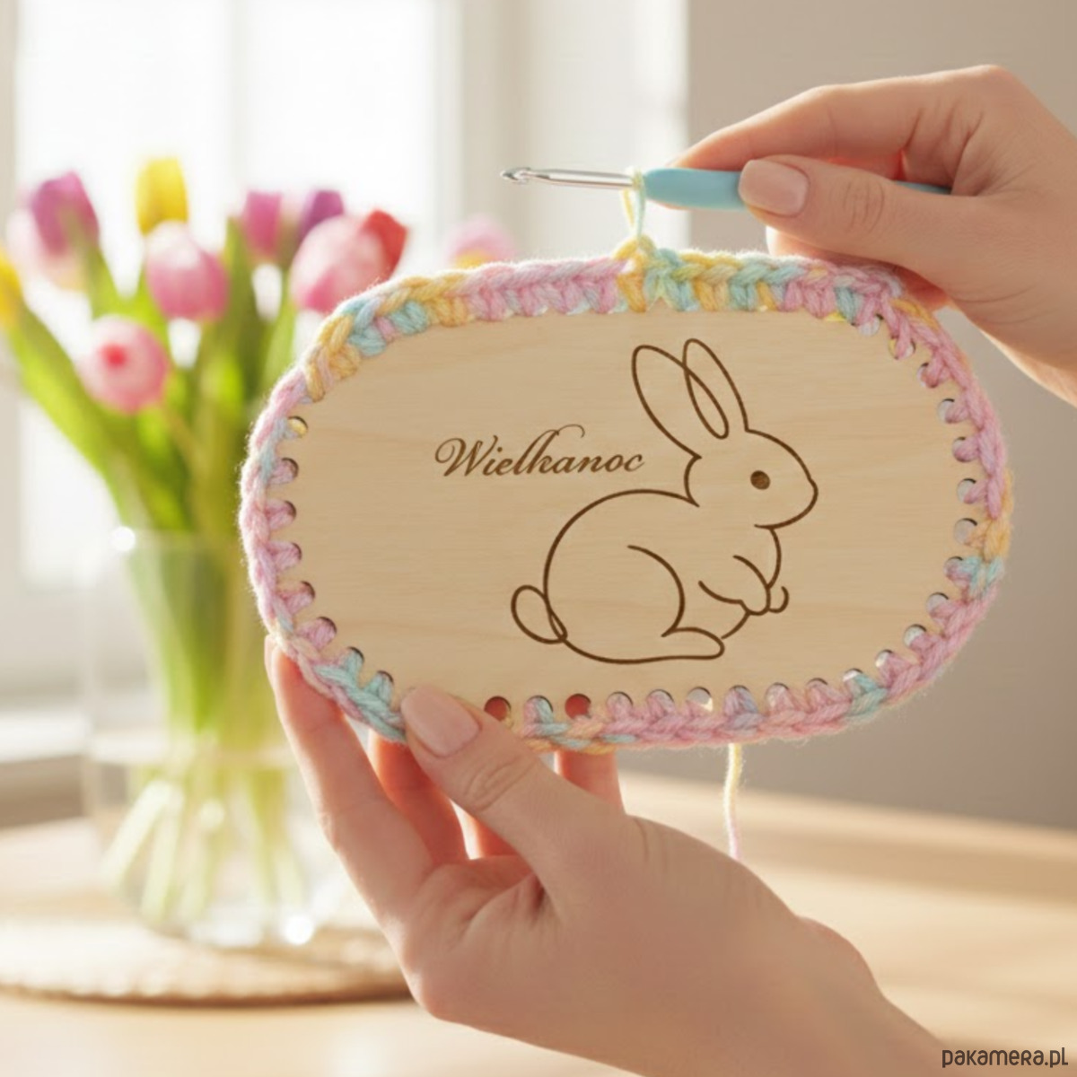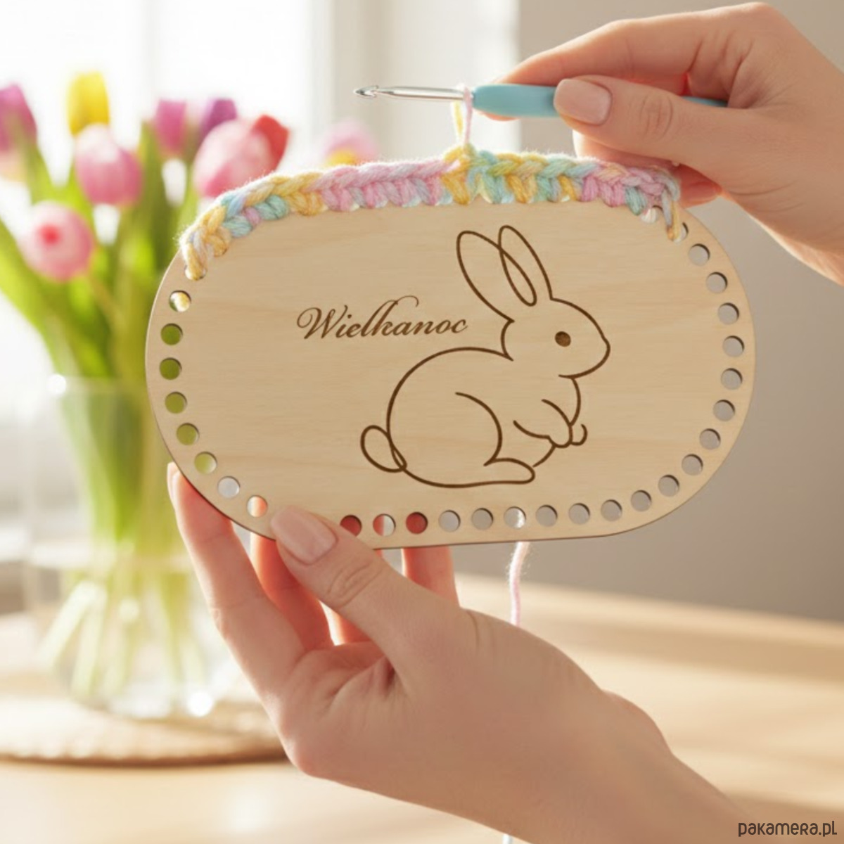 Drewniana baza wielkanocna do szydełkowania w kształcie owalu to idealna podstawa do tworzenia drobnych, ręcznie robionych dekoracji świątecznych. Naturalne drewno i precyzyjne wycięcia sprawiają, że praca z nią jest łatwa i przyjemna.