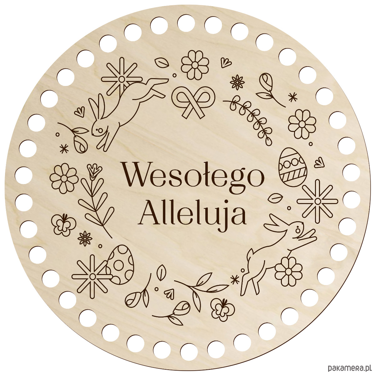 Drewniana baza do szydełkowania z wielkanocnym grawerem to wyjątkowy dodatek do rękodzieła, który pozwoli stworzyć niepowtarzalne dekoracje świąteczne. Wykonana z naturalnej sklejki brzozowej zachwyca estetyką, precyzją wykonania i świątecznym charakterem.