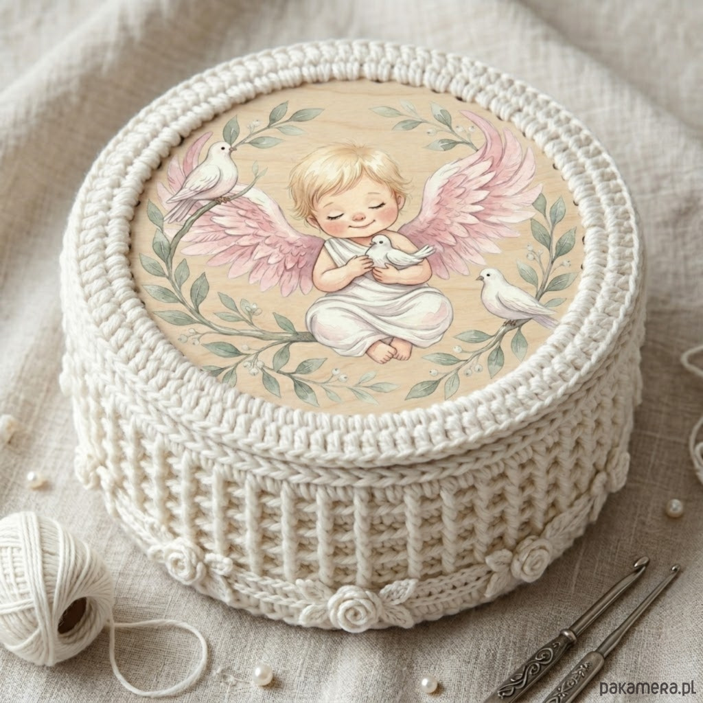 Baza Kolorowa na Chrzest Święty do Szydełkowania Koszyka Pudełka ze Sklejki