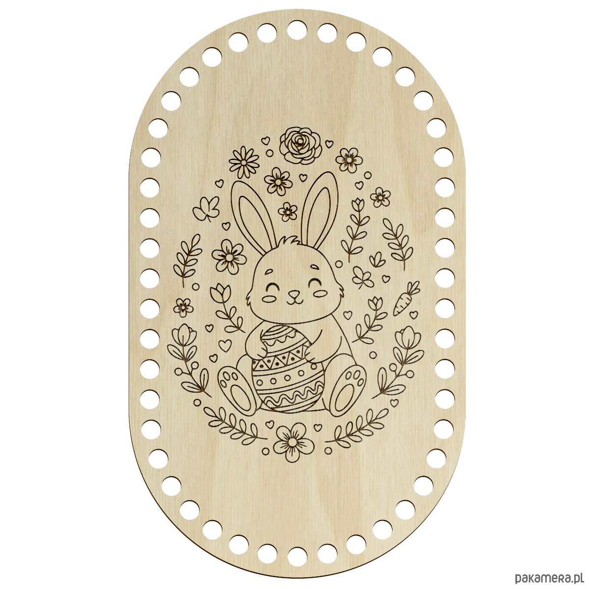 Drewniana baza wielkanocna do szydełkowania w kształcie owalu to idealna podstawa do tworzenia drobnych, ręcznie robionych dekoracji świątecznych. Naturalne drewno i precyzyjne wycięcia sprawiają, że praca z nią jest łatwa i przyjemna.