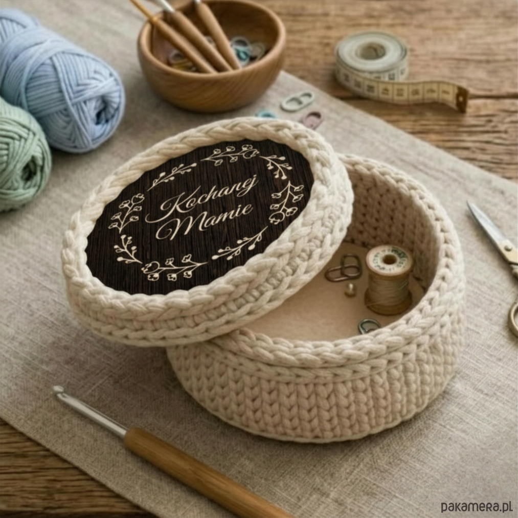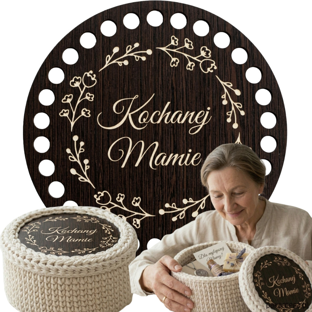 Elegancka drewniana baza do szydełkowania o średnicy 20 cm w kolorze wenge z grawerem „Kochanej Mamie” to wyjątkowy element do tworzenia personalizowanych, ręcznie robionych dekoracji. Naturalny, głęboki odcień drewna nadaje całości ciepły i elegancki charakter, idealny na prezent pełen emocji.
