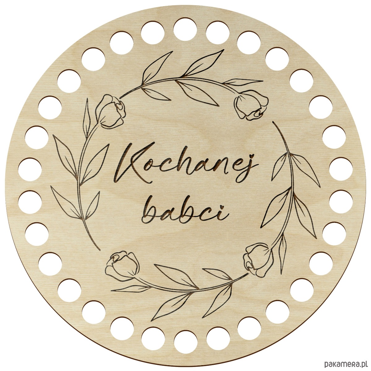 Okrągła baza do szydełkowania wykonana z wysokiej jakości sklejki brzozowej. Idealna do tworzenia ręcznie robionych koszyczków i prezentów dla babci z wyjątkowym, personalizowanym charakterem.