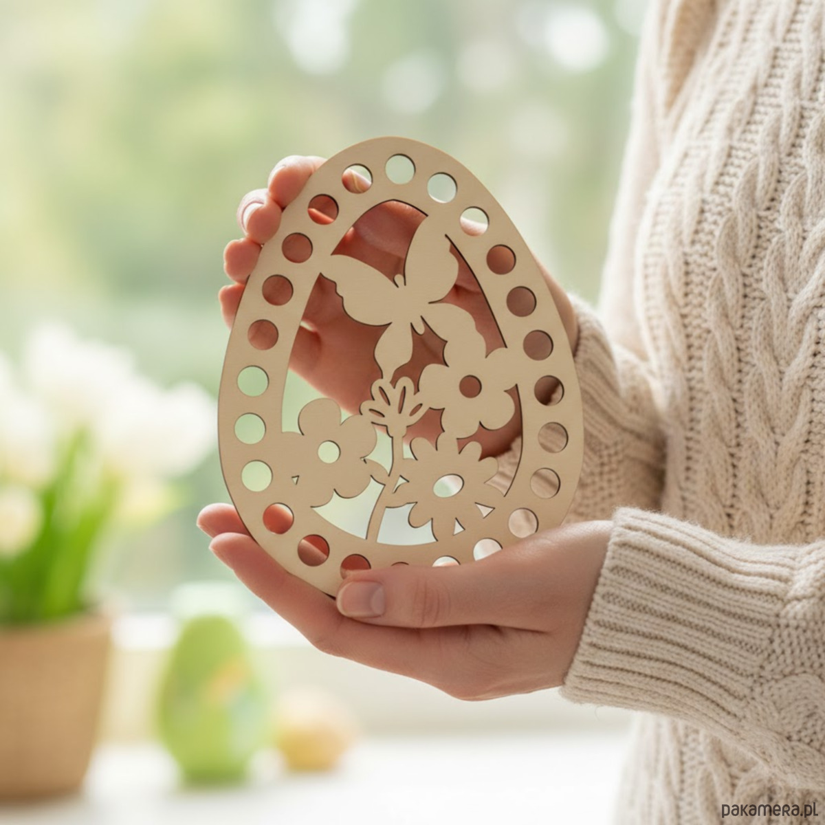 Drewniana baza wielkanocna do szydełkowania w kształcie jajka to idealna podstawa do tworzenia drobnych, ręcznie robionych dekoracji świątecznych. Naturalne drewno i precyzyjne wycięcia sprawiają, że praca z nią jest łatwa i przyjemna.