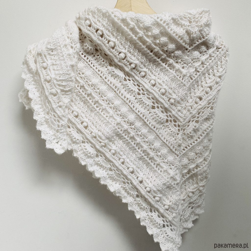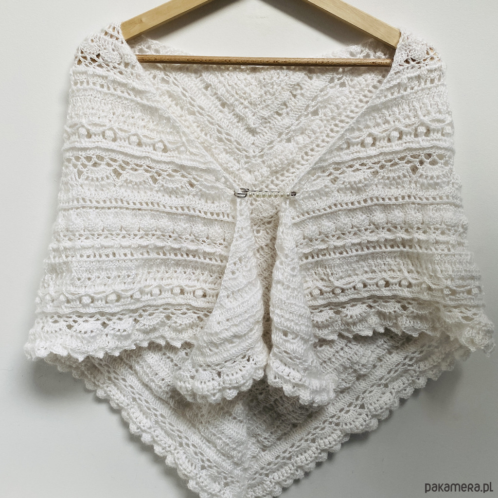 Ręcznie robiona biała chusta to artystyczne dopełnienie sukni ślubnej dodające jej uroku i romantyzmu. Wykonanie handmade sprawia, że jest niepowtarzalnym, wysokiej jakości dodatkiem, który uczyni ten dzień jeszcze bardziej niezapomnianym.