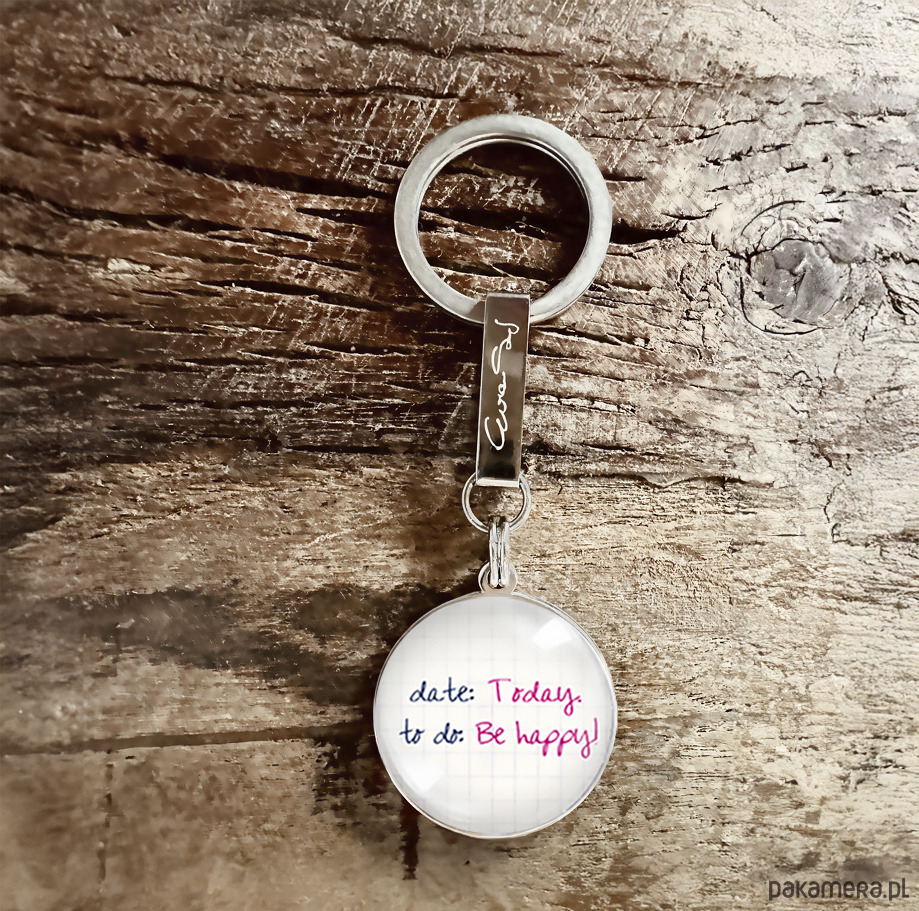 Brelok stalowy z sentencją „date: today to do: be happy”