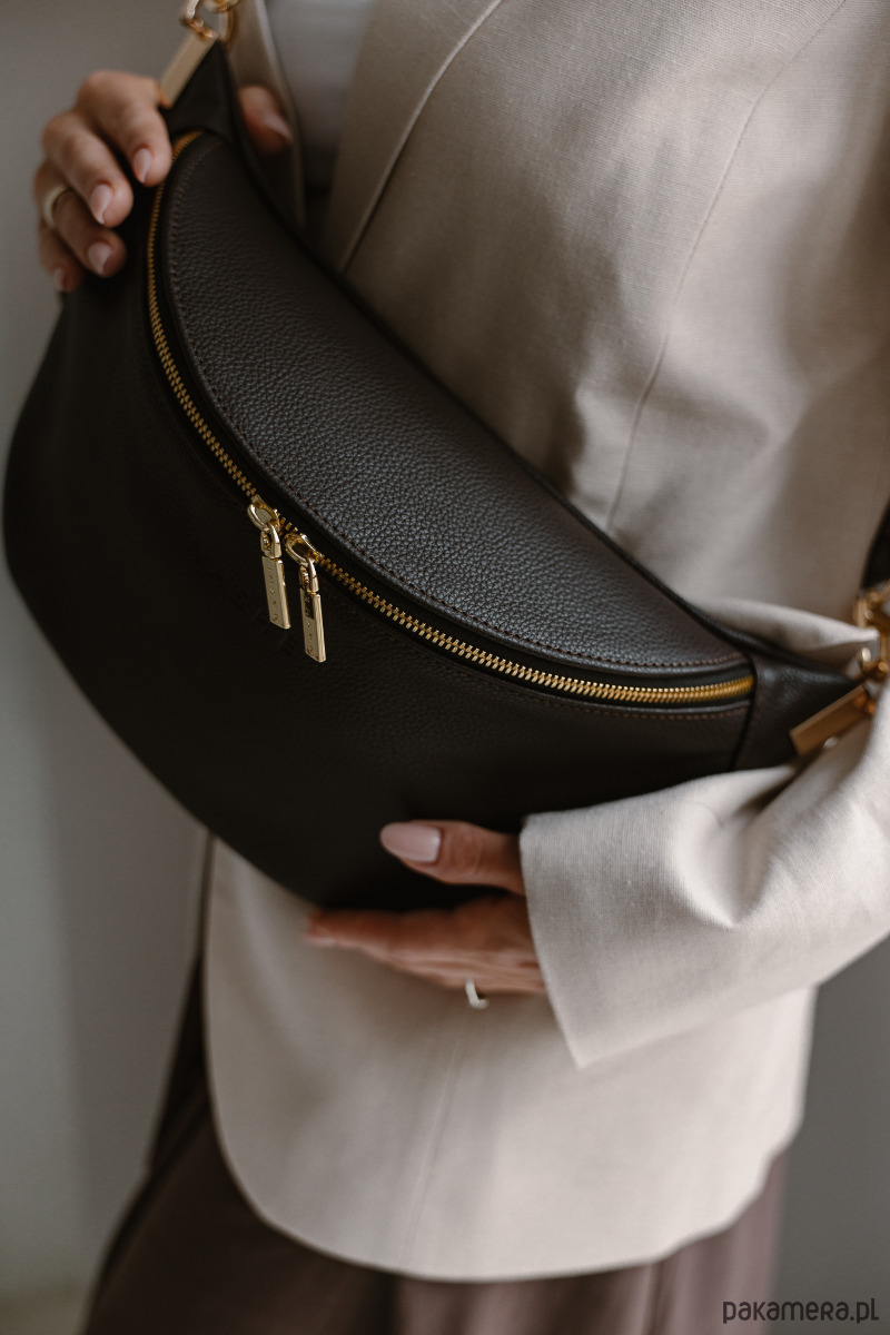 BEANIE BAG MAXI to wyjątkowe połączenie stylu, wygody i funkcjonalności w większym formacie. Ta duża skórzana nerka ciemny brąz pomieści wszystkie niezbędne drobiazgi, a jednocześnie doda charakteru każdej stylizacji - eleganckiej, casualowej, jak również sportowej. Jest idealna do noszenia na ramieniu oraz przez ciało. Szybko może stać się Twoją ulubioną torebką na co dzień!