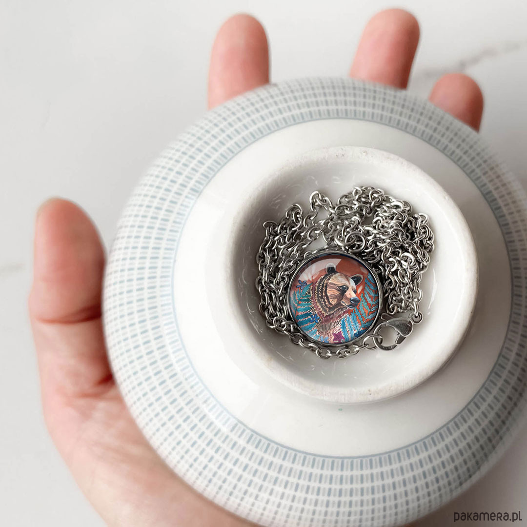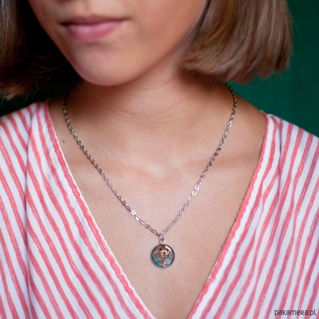 Naszyjnik z medalionem, w którym umieszczona jest kolorowa, autorska ilustracja pod szkiełkiem to elegancki i kobiecy dodatek, który idealnie wpisuje się w duch stylu casual.