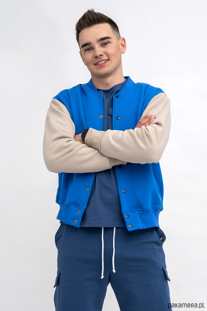 Bejsbolówka to zapinana na napy bluza o sportowym charakterze, inspirowana amerykańskimi kurtkami drużynowymi. Zazwyczaj wykonana z materiałów takich jak bawełna, poliester lub wełna, posiada kieszenie oraz ściągacze na rękawach, kołnierzu i dole, co nadaje jej dopasowany wygląd